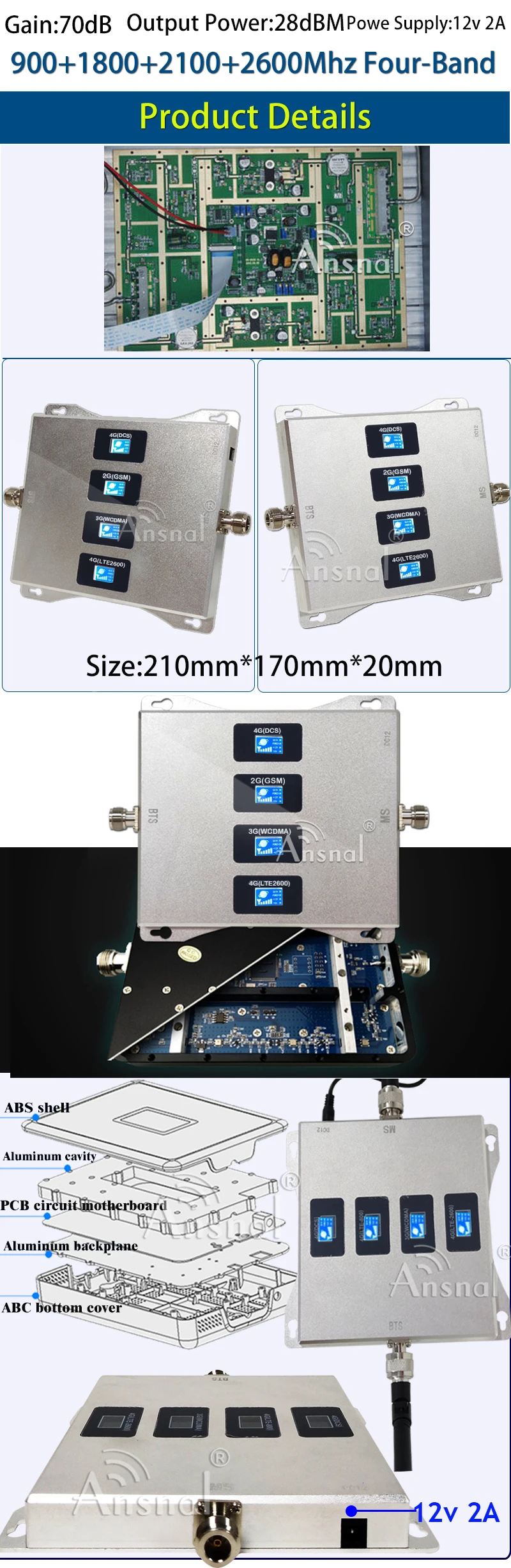 4G усилитель связи 900 1800 2100 2600 МГц Усилитель сотового телефона четырехдиапазонный GSM усилитель мобильного сигнала 2G 3G 4G LTE сотовый ретранслятор GSM DCS WCDMA