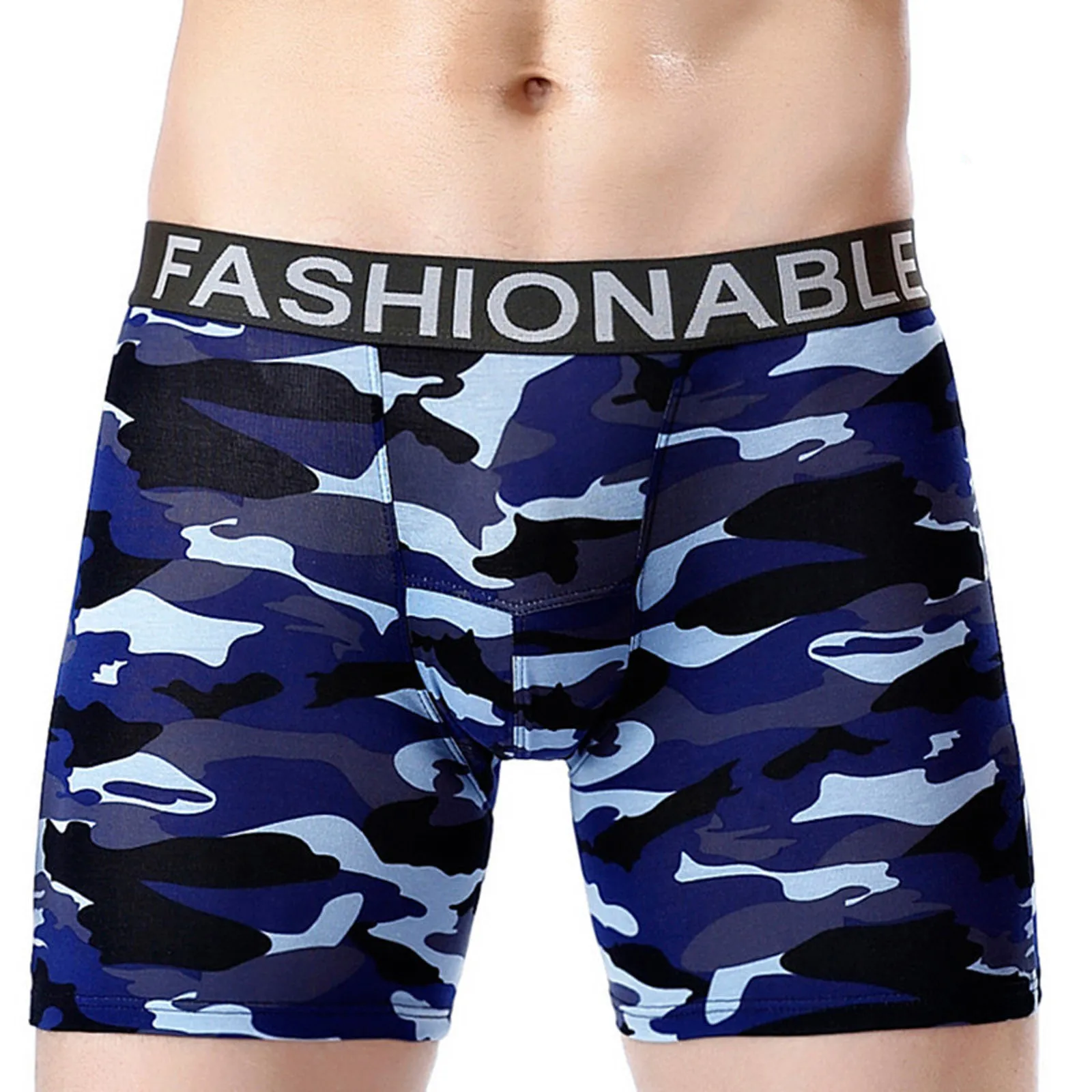 Боксеры мужские длинные камуфляжные, хлопковые шорты-боксеры, пикантное нижнее белье, трусы