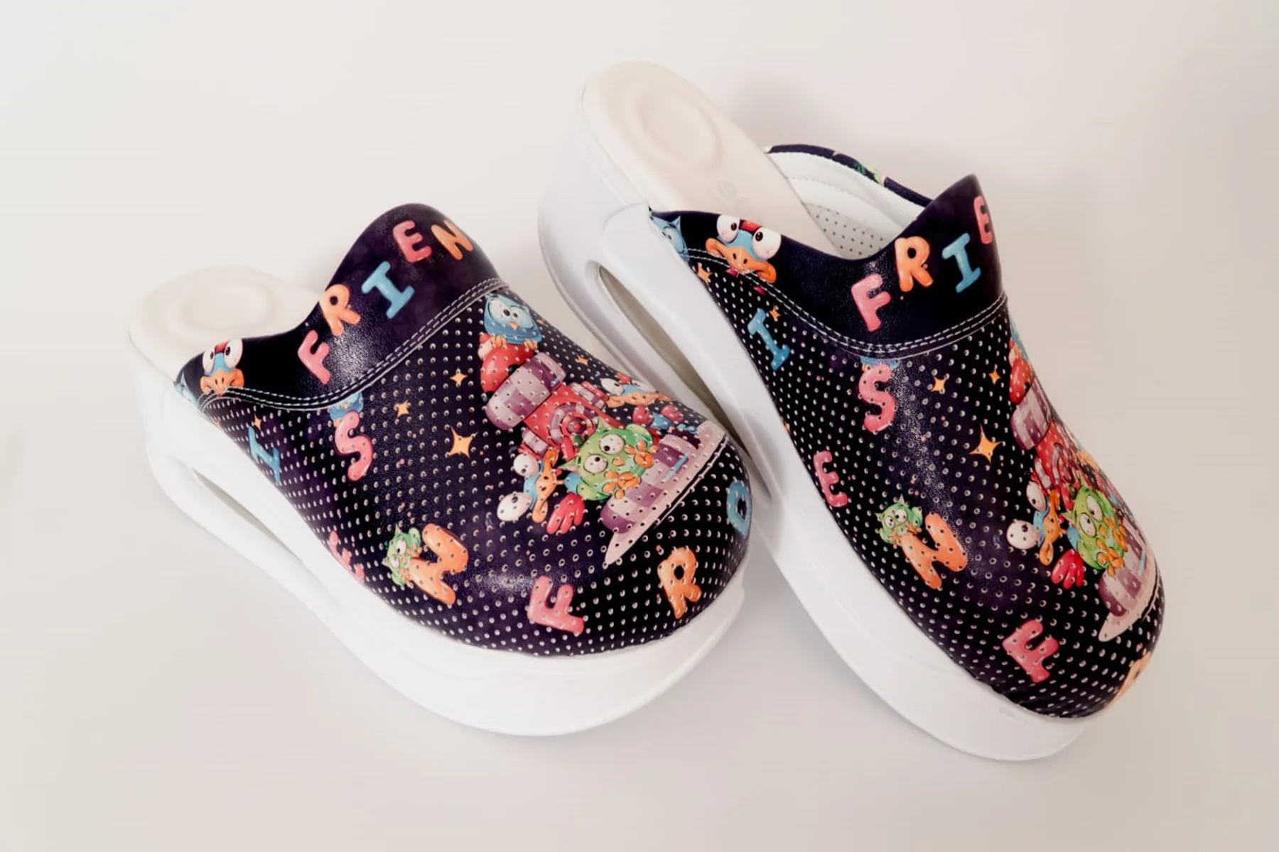 -Была создана система для уменьшения давления костей с помощью амортизирующей системы в носках и пяточной части сабо.