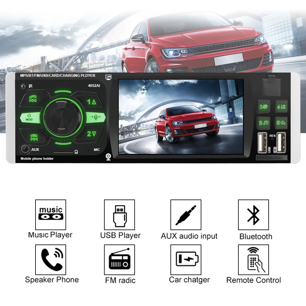 Пульт дистанционного управления LEEPEE, 1 Din, 4,1 дюйма, Bluetooth 4,2, TF, USB, быстрая зарядка, аудио, видео, MP5-плеер