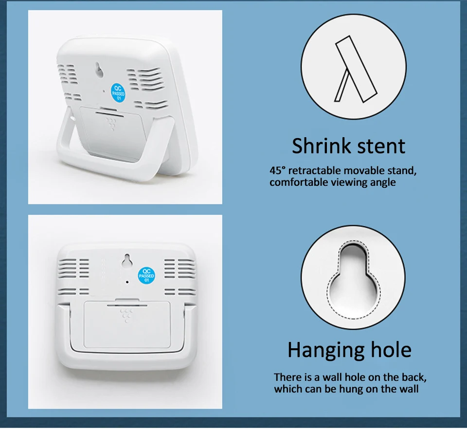 Особенности:Точное измерение в реальном времениНаш цифровой термометр имеет большие вентиляционные отверстия с обеих сторон для обеспечения высоких точных показаний с быстрым и реальным откликом. С широким диапазоном температур от-9,9 °C-50 °C и широкий диапазон влажности от 10% RH - 99% RH.Индикатор комфорта с рисункомЕсть два мультяшных значка, показывающие текущие погодные условия в режиме реального времени. Улыбающееся лицо символизирует «комфорт» (Относительная влажность: 40%-70%), а плачевое лицо означает «неприятный» (Относительная влажность: <40% или> 70%).Большой ЖК-дисплейЭтот термометр влажности интегрирует ЖК-дисплей с большим четким индикатором цифр, отображает температуру в помещении и влажность одновременно, очень легко читается.Гибкий для установкиОн имеет складывающуюся подставку 45 ° C для удобного размещения на рабочем столе. Кроме того, на спине есть подвесное отверстие, которое позволяет также повесить его на стену.Простота в использованииТермогигрометр имеет простой дизайн с 3 кнопками, что делает его более элегантным и изящным. Есть кнопка переключения для выбора единицы измерения °C / °F, кнопка Mode и кнопка ADJ для установки.Широкое применениеЭтот цифровой термометр делает вашу жизнь более легкой и идеально подходит для многих мест, таких как крытый, офис, дом, детская комната, ванная комната, Цветочная комната и т. д.Характеристики:Тип: электронный цифровой термометрЦвет: белыйМатериал: АБС-пластикКоличество: 1 шт.Диапазон измерения температуры:-50 °C-70 °CДиапазон измерения влажности: 10% ~ 99% (RH)Точность измерения температуры: 1 °CТочность измерения влажности: 5% относительной влажностиПогрешность измерения температуры: ± 1 °CПогрешность измерения влажности: ± 5% относительной влажностиРазрешение температуры: 0,1 °CМощность питания: 1,5 V элемент питания AAА (в комплект не входит)Размер: 82*78*21 мм/3,22*3,07 * 0.83inВес нетто: 66 гУпаковка:1 * электронный цифровой термометр