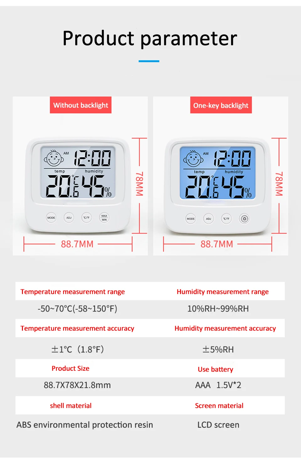 Цифровой измеритель температуры и влажности с ЖК-дисплеем, домашний электронный гигрометр с подсветкой, термометр, комнатный гигрометр