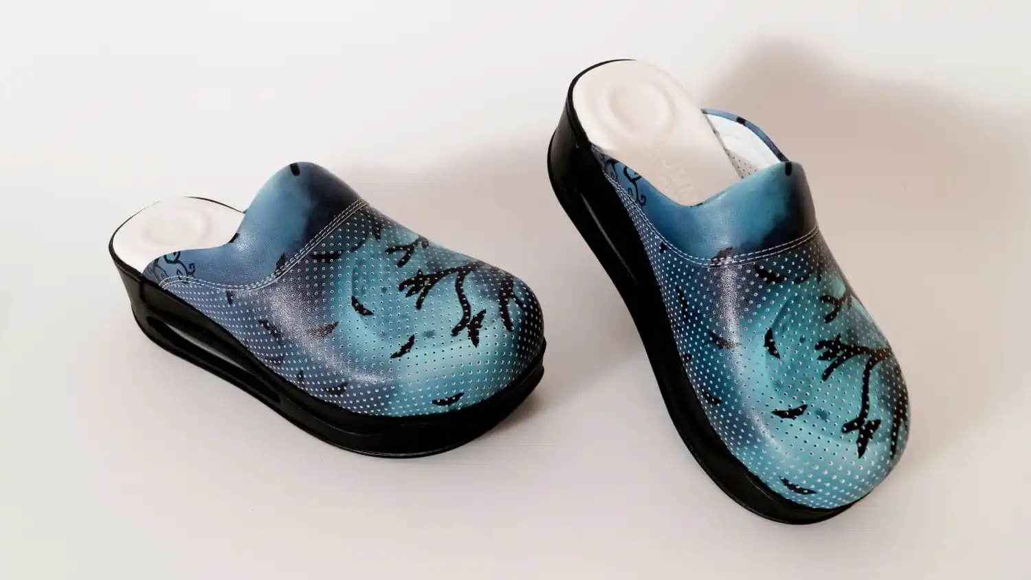 -Была создана система для уменьшения давления костей с помощью амортизирующей системы в носках и пяточной части сабо.