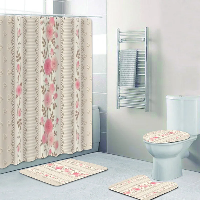 Потрепанные полосы и розовые розы кружевная душевая занавеска для ванной в стиле ретро шикарная бежевая Пастельная Цветочная занавеска для ванной s Коврики для туалета
