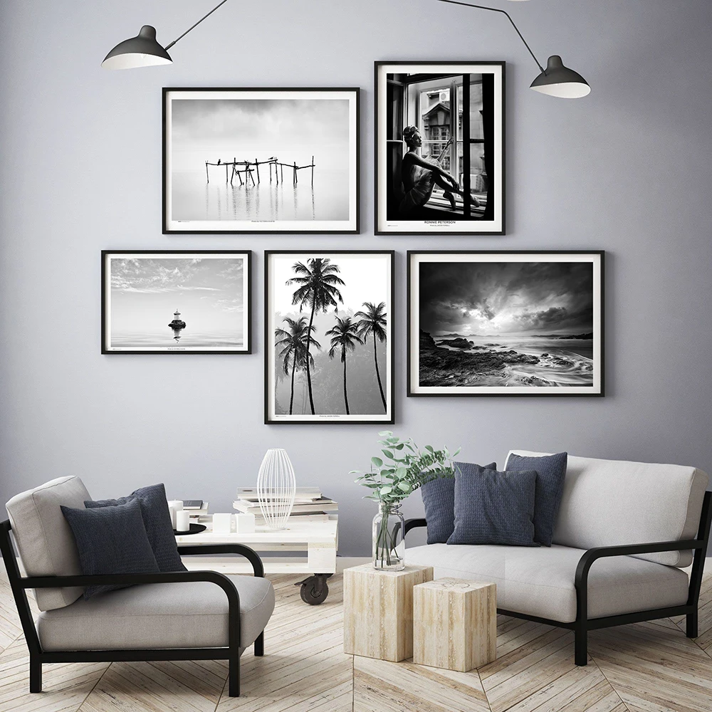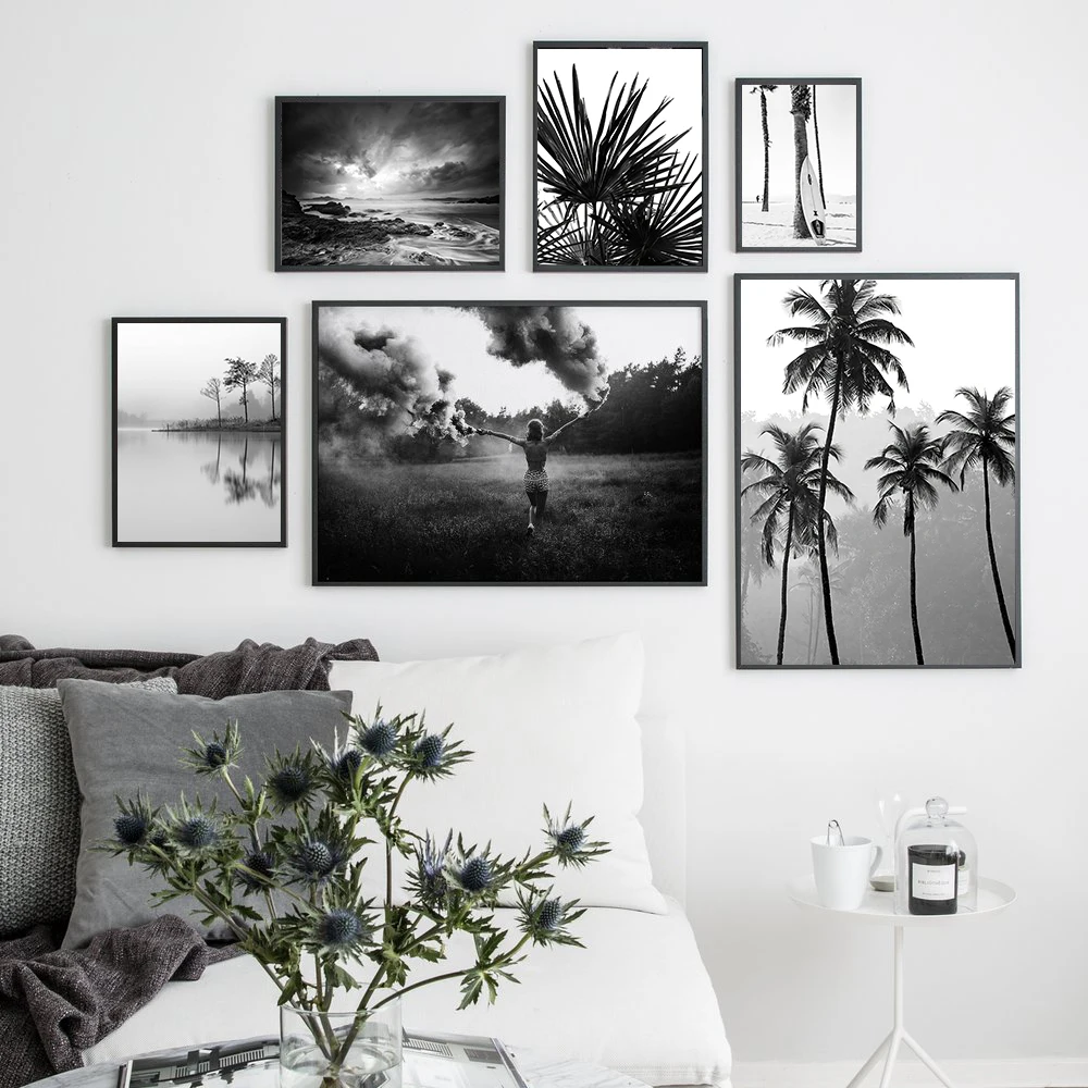 Черный белый женский постер пальмовое дерево пейзаж печать стены искусство абстрактная картина холст фотография современное оформление помещения картина