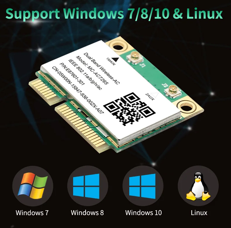 Совместим с: поддерживает почти ноутбук с интерфейсом Mini PCI-E, таким как Asus, Acer, Dell, Samsung, Toshiba, Sony и т. Д.