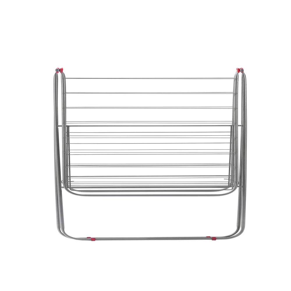 Модель складной сушилки с несколькими вариантами раскладывания (по типу "Бабочка"). Использование в самом ограниченном пространстве.Удобный и надежный механизм раскладывания. Пластиковые колпаки на ножках сушилки защищают пол от царапин. Все углы сушилки плавно скруглены. Нагрузка 15 кг.
