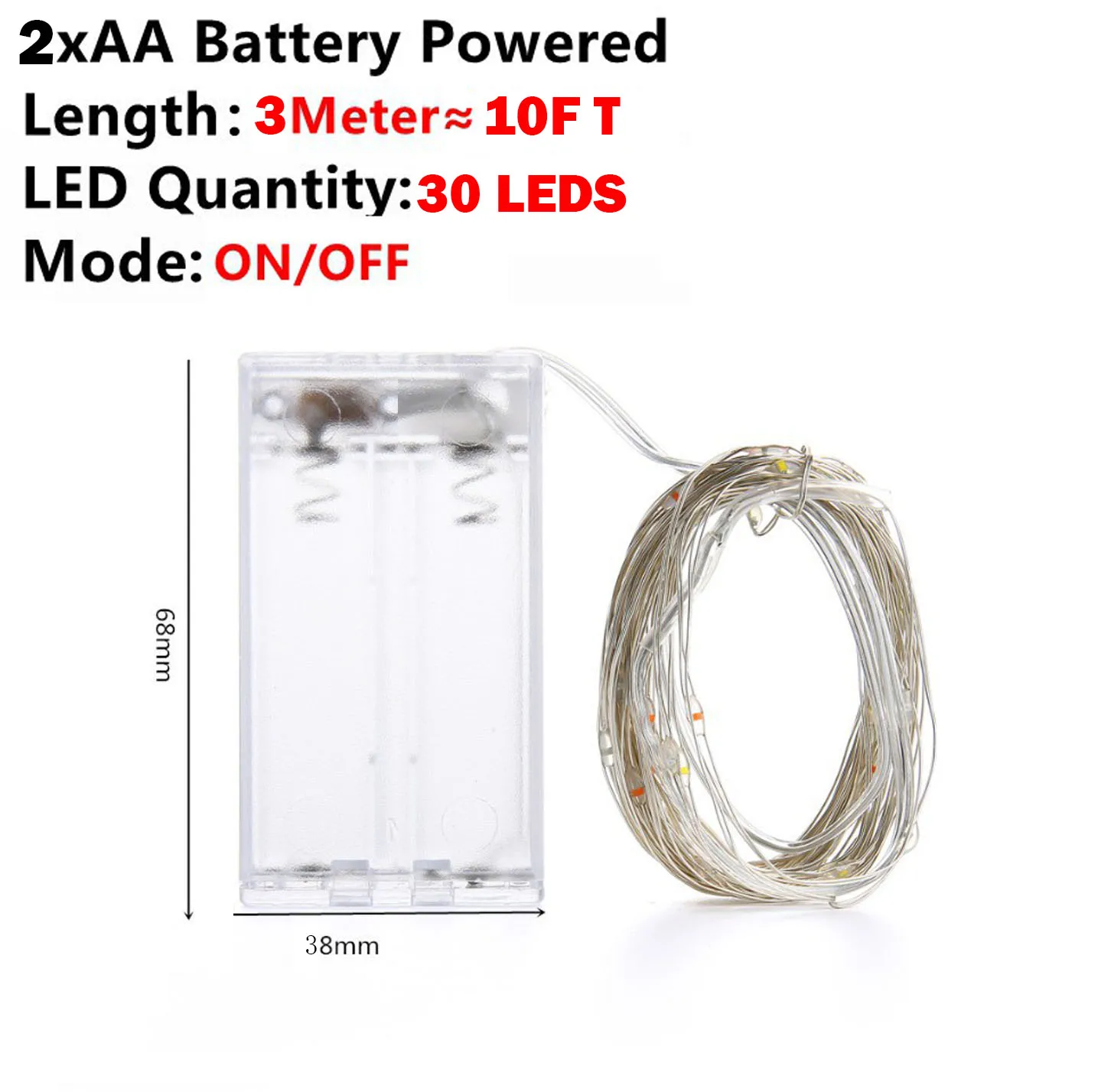 С медным проводом, батареей гирлянда, светодиодная, 3 м, 10 футов