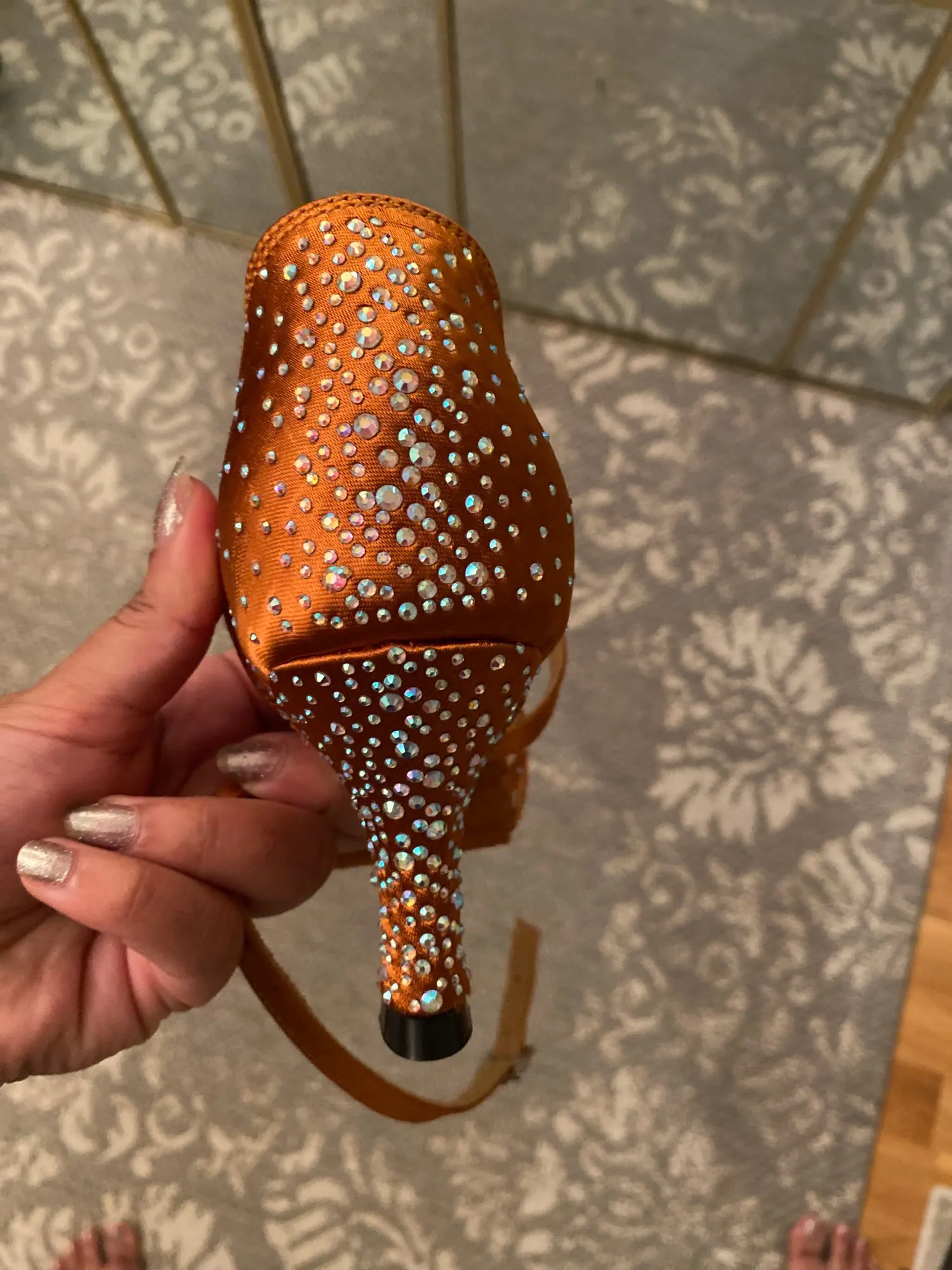 Туфли для латиноамериканских танцев, атласные, бронзовые