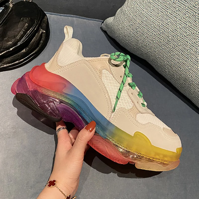 Женские кроссовки из натуральной кожи, на высокой платформе