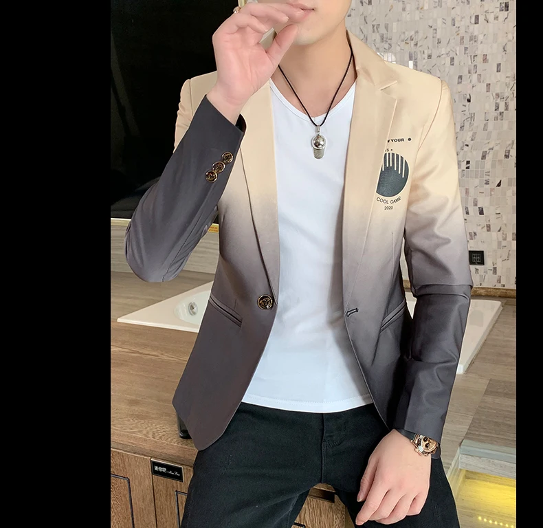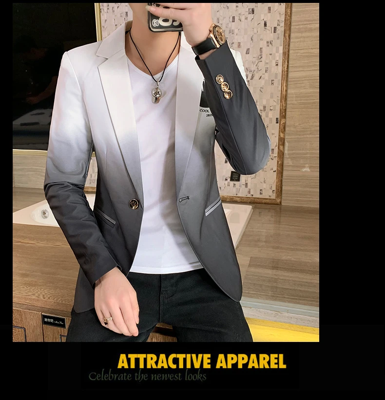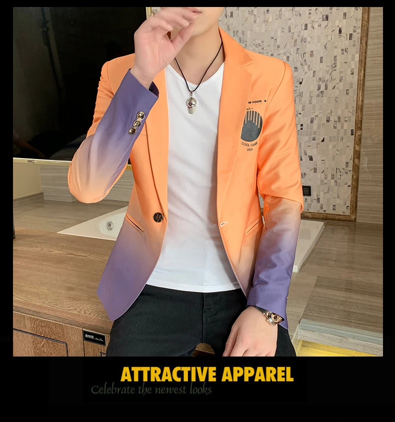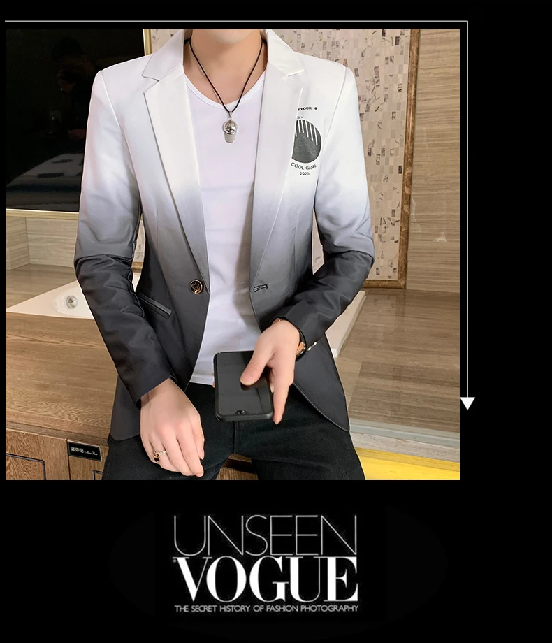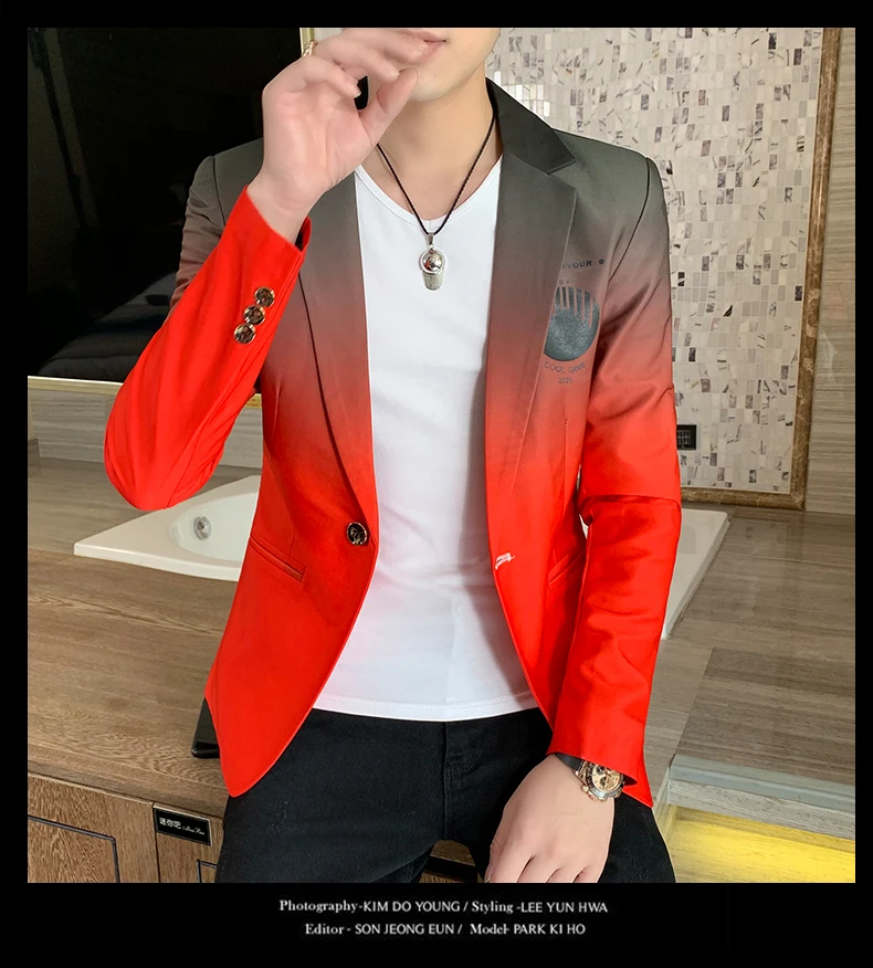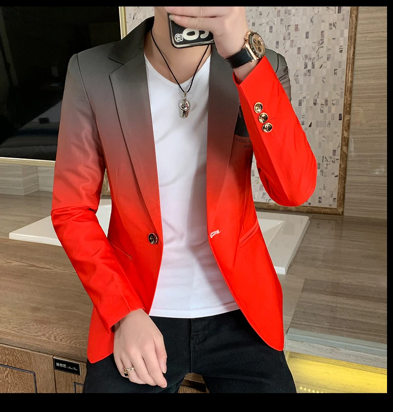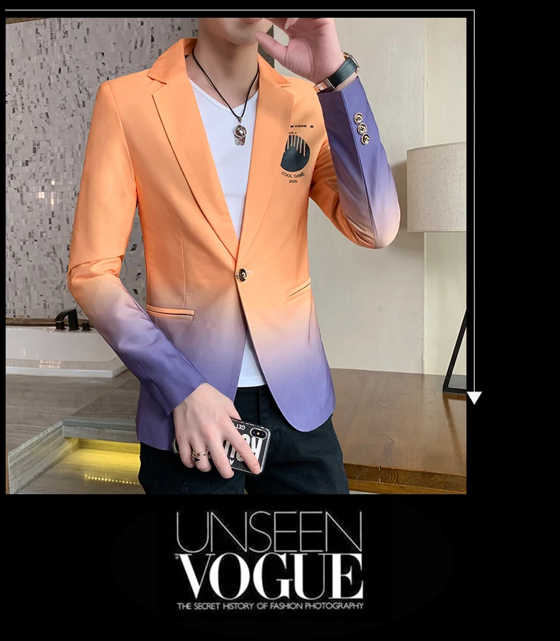 Новый мужской блейзер, модная весенне-летняя одежда, мужской костюм, куртка, градиентные цвета, Повседневный, приталенный, причудливый, для вечевечерние НКИ, Блейзер, пальто певицы