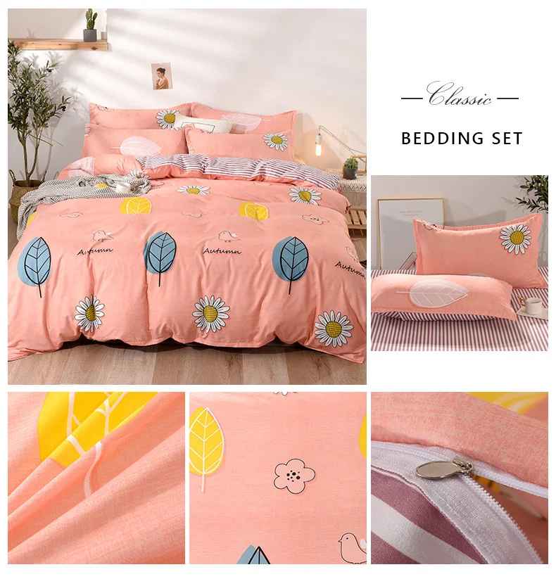 Современное постельное белье с узором из листьев, набор постельного белья, простыня в клетку, в полоску, набор пододеяльников, односпальная двуспальная кровать