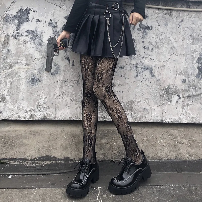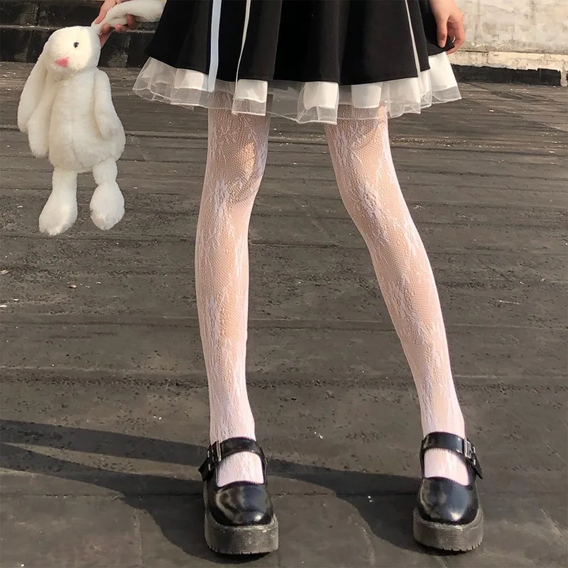 Колготки женские в японском стиле, сетчатые, в стиле ретро, с принт...
