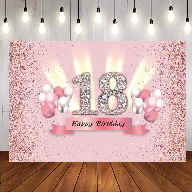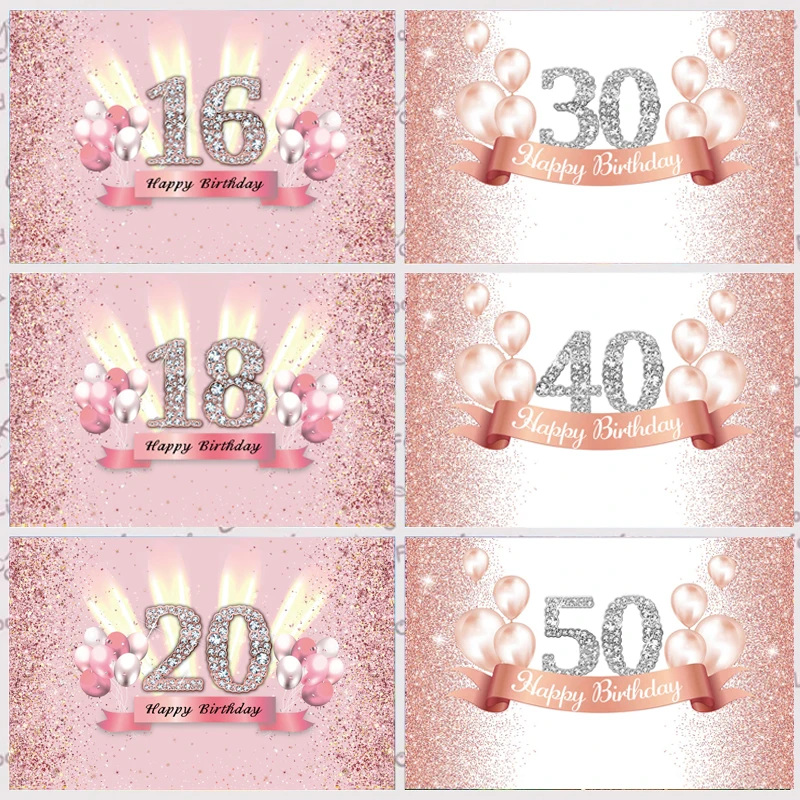С милым розовым бантом счастливый День рождения фон 30th 40 50 18 цвета розового золота леди шар взрослых Фотофон по индивидуальному дизайну, фон для фотостудий
