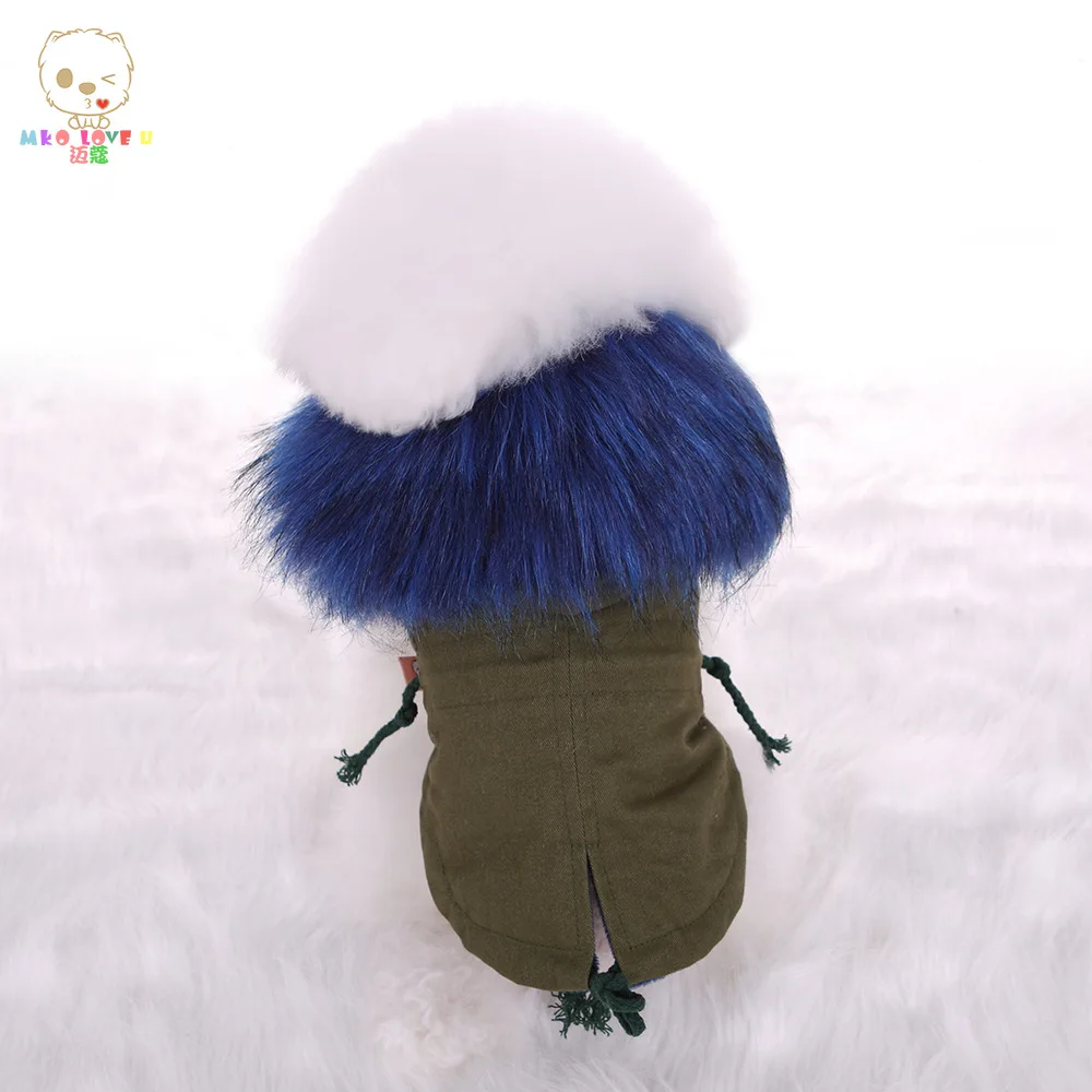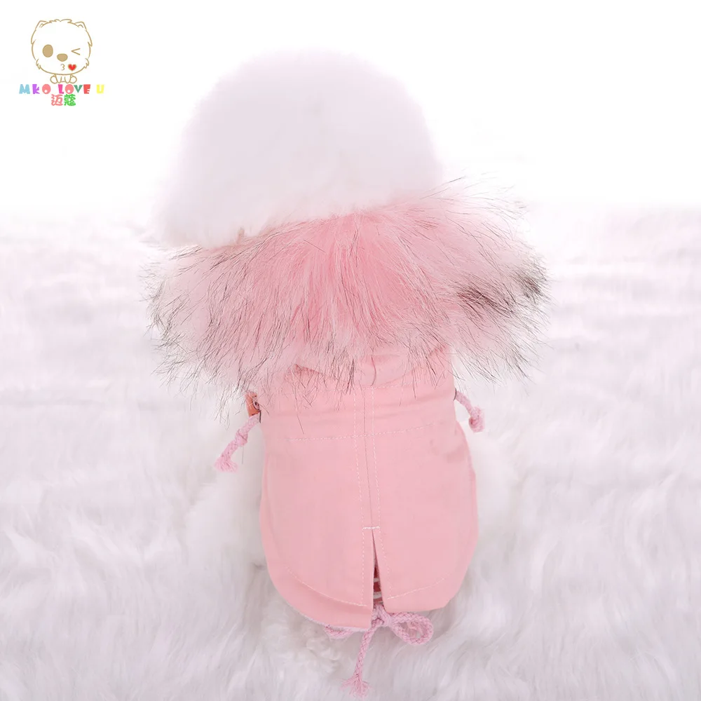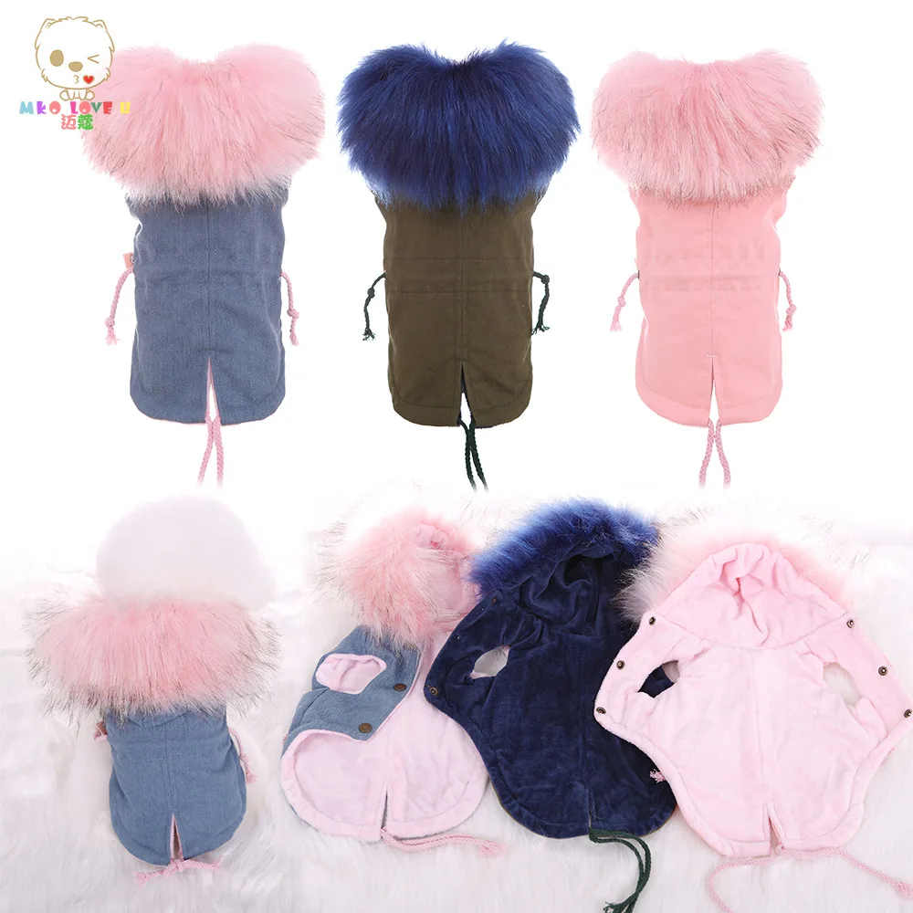 Роскошная Одежда для собак Одежда для домашних животных для маленьких собак джинсовая Паркер верхняя одежда с меховым воротником жилет зимняя куртка женская