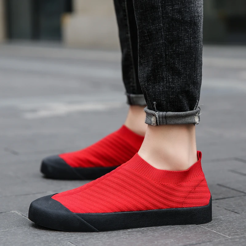 Мужская обувь, вязаные кроссовки-носки, женские Летние слипоны на п...