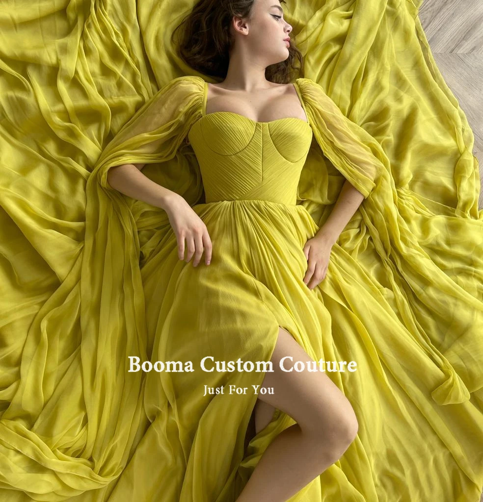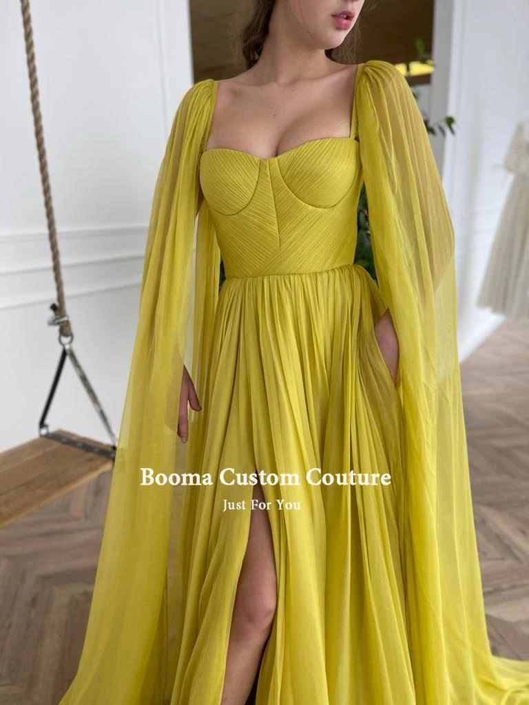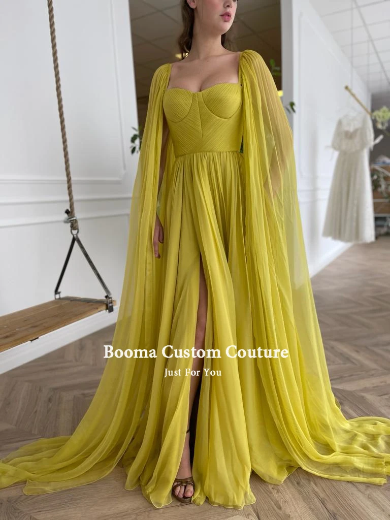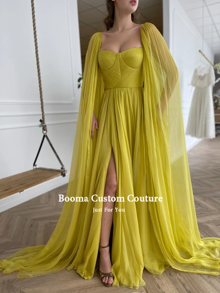 Женское шифоновое платье-накидка Booma, желтое вечернее платье-трапеция с разрезом по бокам, со шлейфом