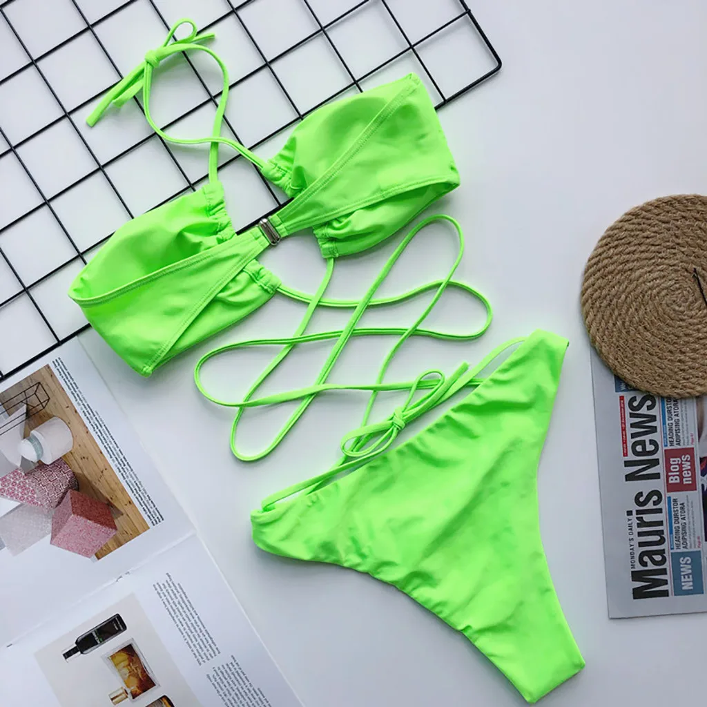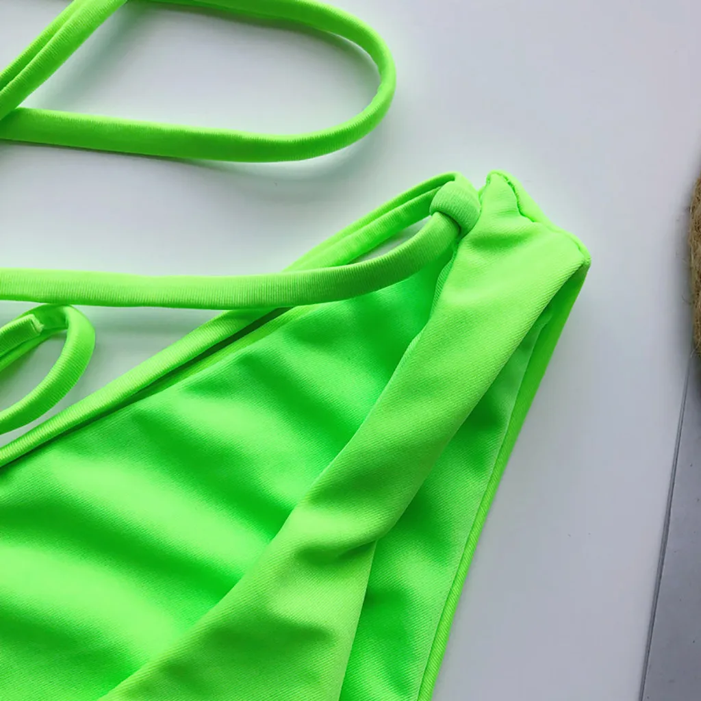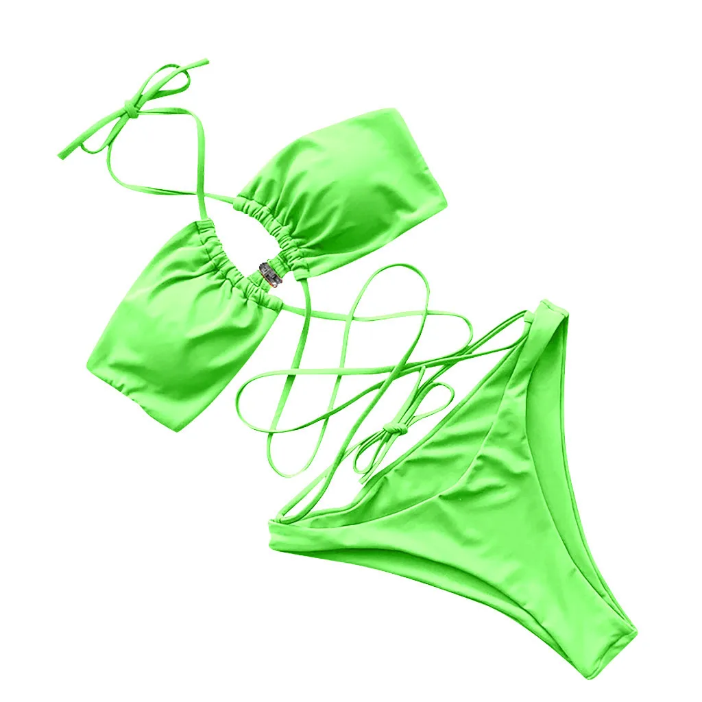 Женский однотонный купальник-бикини, купальник с лямкой через шею, цельный бюстгальтер, купальная одежда, пляжная одежда, Женский танкини, женское бикини