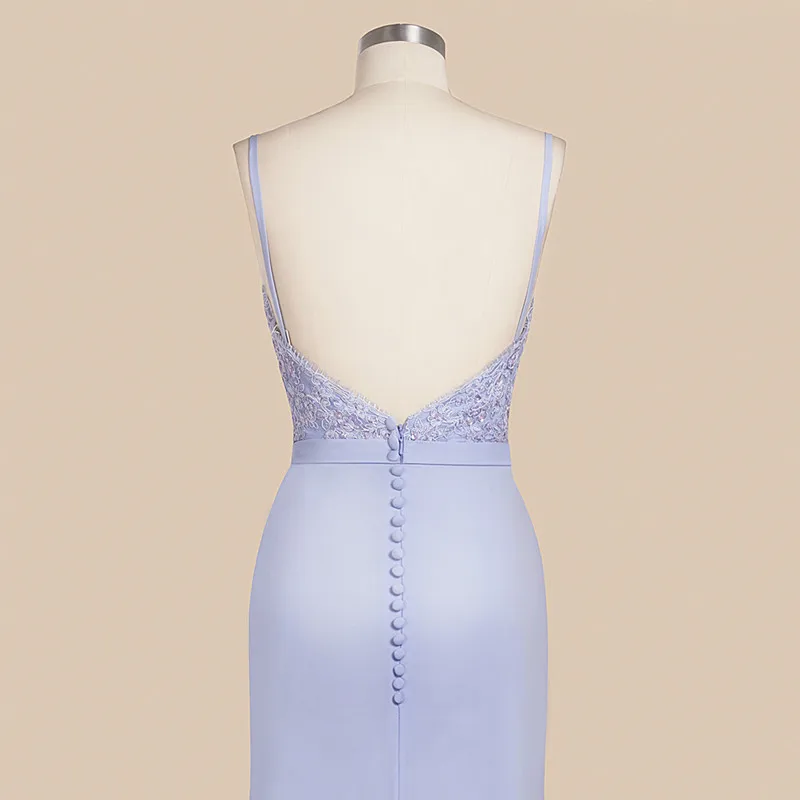 Платья подружек невесты с низким вырезом на спине русалка сиреневого цвета с кружевными бретелями; Платье с бисером аппликации свадебное праздничное платье De Soiree Demoiselle длинное детское нарядное платье