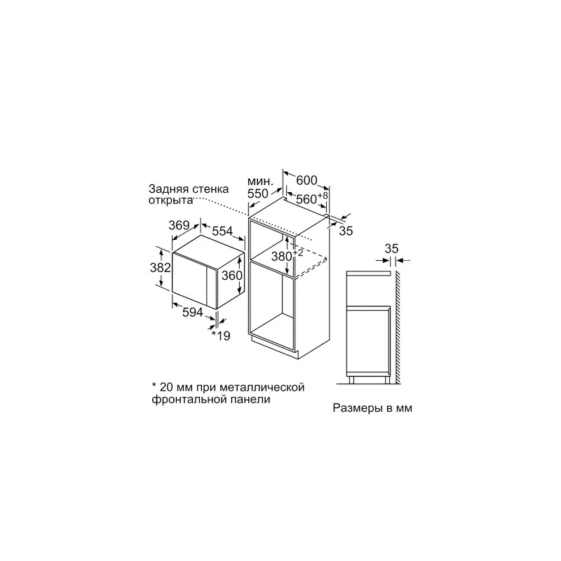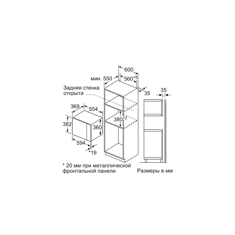 Микроволновка и режим разогреваГриль мощностью до 1200 ВтГриль и режимы микроволновки 90 Вт, 180 Вт, 360 ВтМаксимальная мощность: 900 Вт; 5 настроек мощности микровoлновки: 90 Вт, 180 Вт, 360 Вт, 600 Вт, 900 ВтLED-дисплейВнутренний объём: 25 лAutoPilot 8 автоматические программы с установкой веса продуктаКомфорт:Многофункциональные часы EasyClock включают в себя бытовой таймер, таймер приготовления, установку окончания приготовленияЛегкость в управлении: простота и удобство в работе4 разморозки и 3 программы приготовления пищи в микроволновой печи, 1 программ сочетание функцииПамять для рецептов пользователяLED-освещение внутреннего пространство рабочей зоныМикроволновая печь с грилемАвтоматическое защитное отключение в зависимости от выставленной температуры и времени работыСистема охлаждения прибора позволяет встроить в любой кухонный гарнитурВращающаяся подставка, 1 x РешёткаТехническая информацияМощность подключения: 1.45 кВтДлина сетевого кабеля: 130 смРазмеры прибора (ВxШxГ): 382 мм x 594 мм x 388 ммРазмеры ниши для встраивания (ВхШхГ): 380 мм - 382 мм x 560 мм - 568 мм x 550 ммПожалуйста, следуйте схемам встраивания и инструкции по монтажу