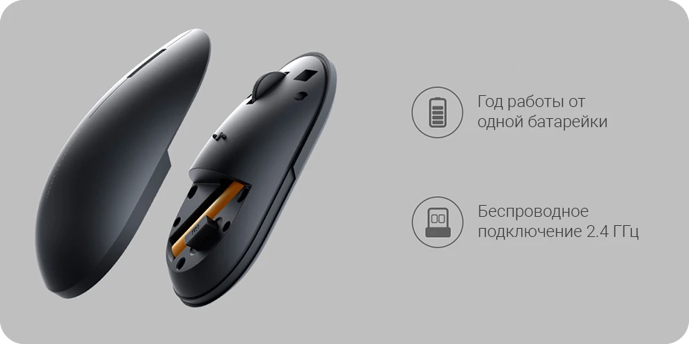 Xiaomi Wireless Mouse 2 – это беспроводная модель, которую удобно использовать, так как она работает даже на приличном расстоянии от компьютера. Работает мышка от батарейки АА, которой хватает приблизительно на 1 год. Однако во многом продолжительность функционирования от одной батарейки зависит от частоты использования мышки.