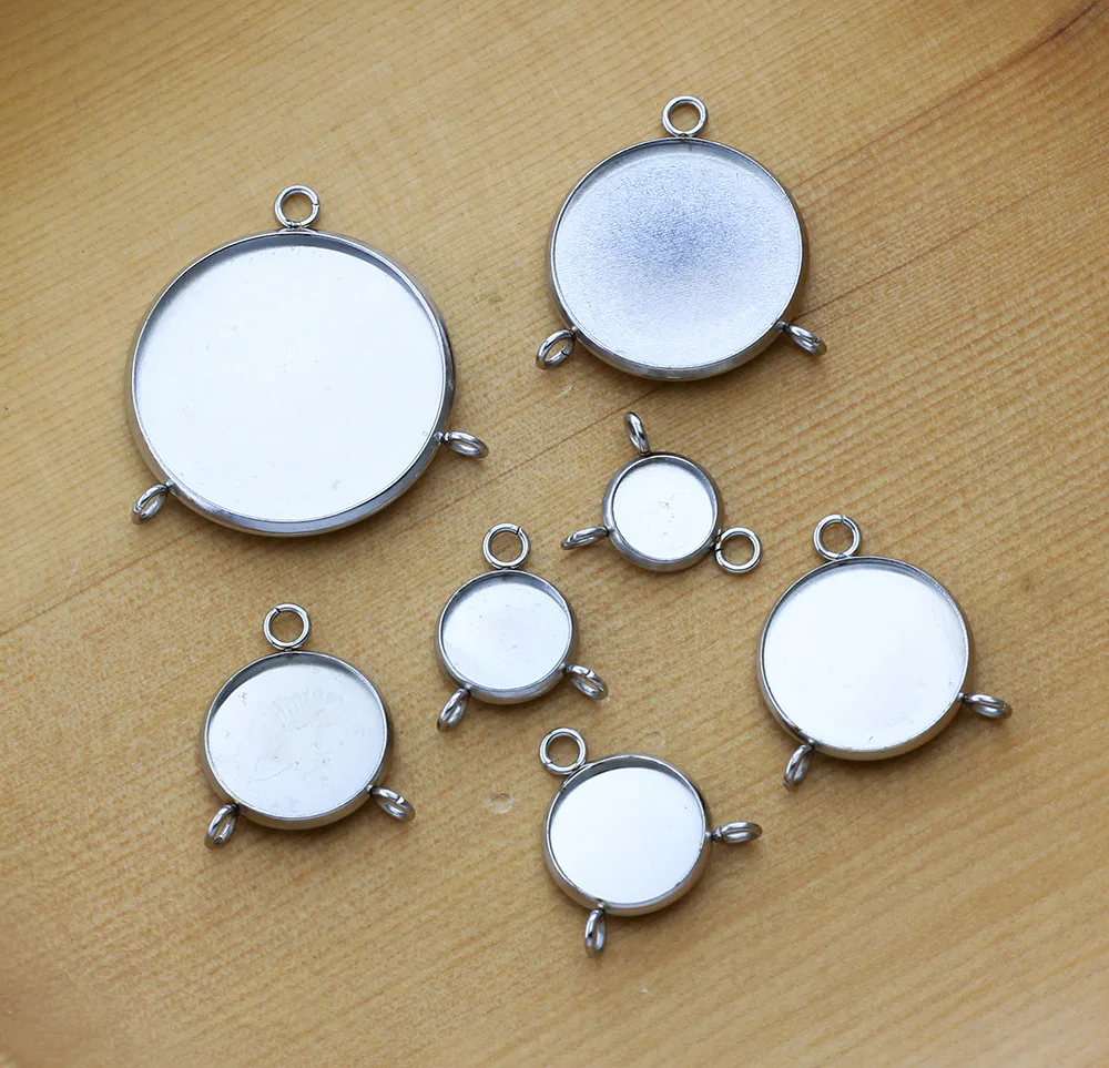 Круглый коннектор для кабошона, базовый пустой лоток из нержавеющей стали, подходит для кабошона 12 мм 14 мм 16 мм 18 мм 20 мм 25 мм