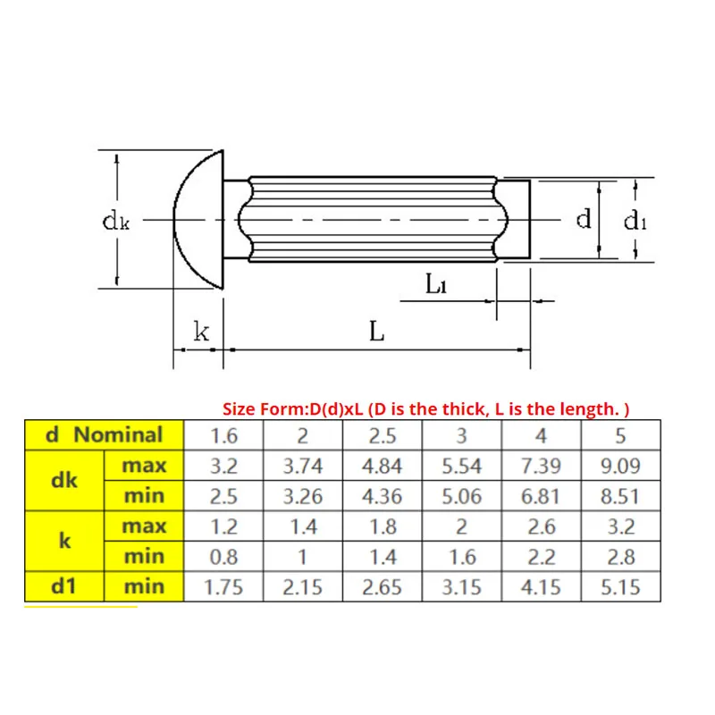 Рифленые Твердые заклепки, кнопка, круглая головка, рифленый хвостовик, твердая заклепка для таблички с именем бирки GB827, алюминий, медьлатунь M4