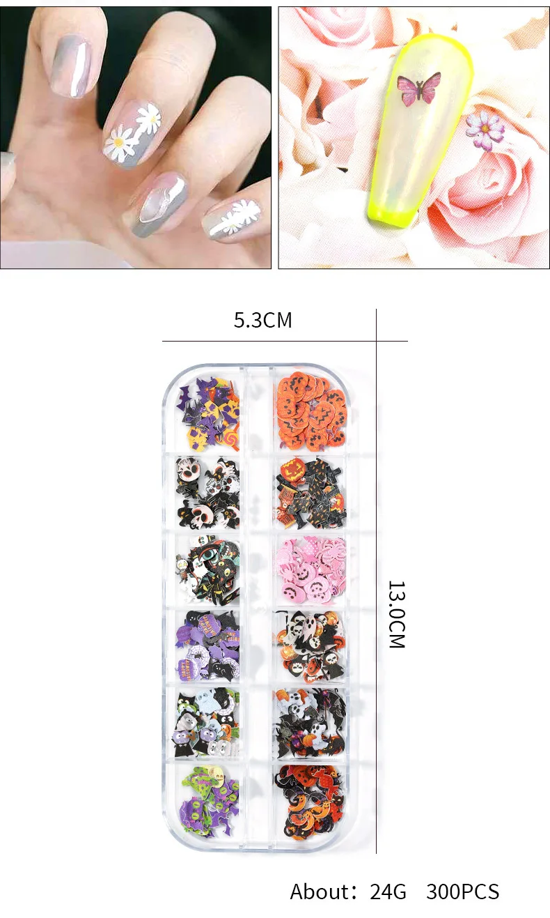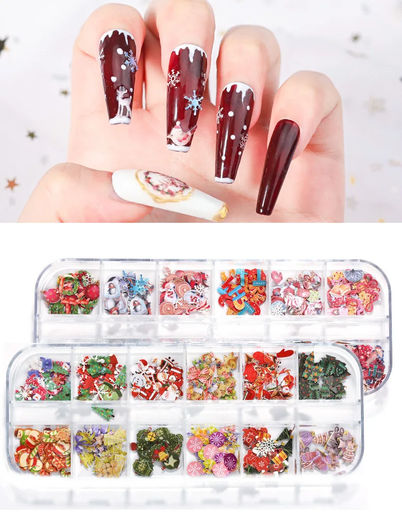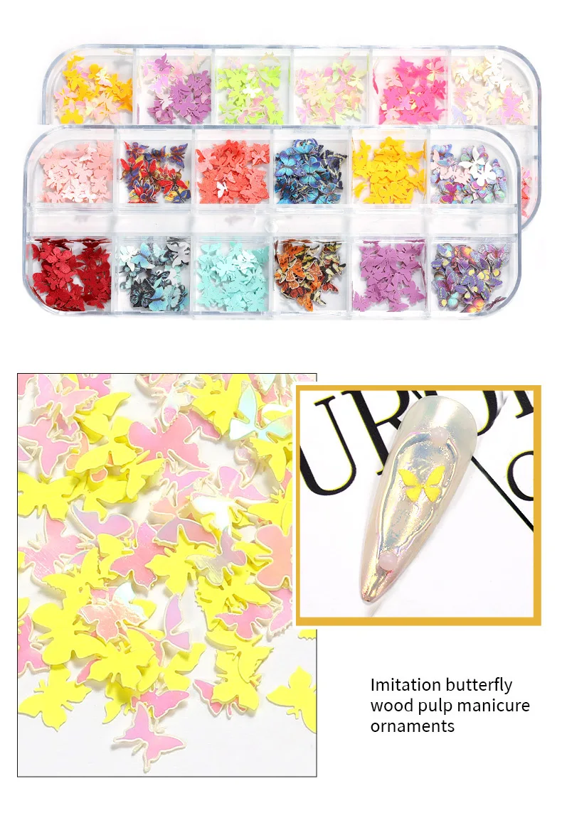 Лидер продаж, новинка, рождественские украшения для ногтей LEAMX из древесной массы, цветной Топ, дизайн, цветок, Бабочка, Хэллоуин, украшения для ногтей, 12 ячеек в коробке, подарок