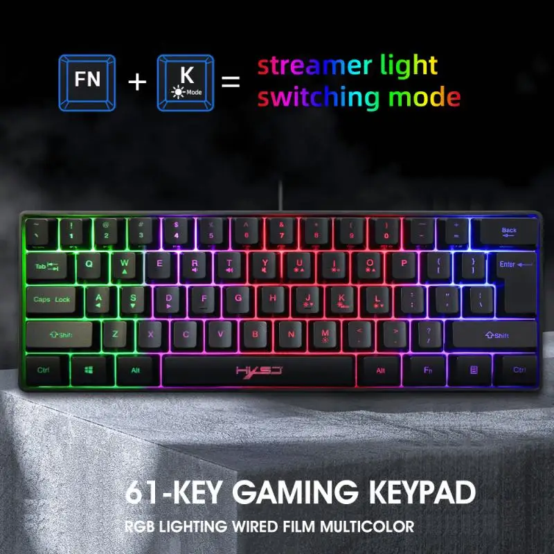 Игровая клавиатура 61 ключ 5 регулируемый уровень RGB Освещение геймер клавиатура для планшета Настольный механические 6400 точекдюйм Мышь с клавиатурой