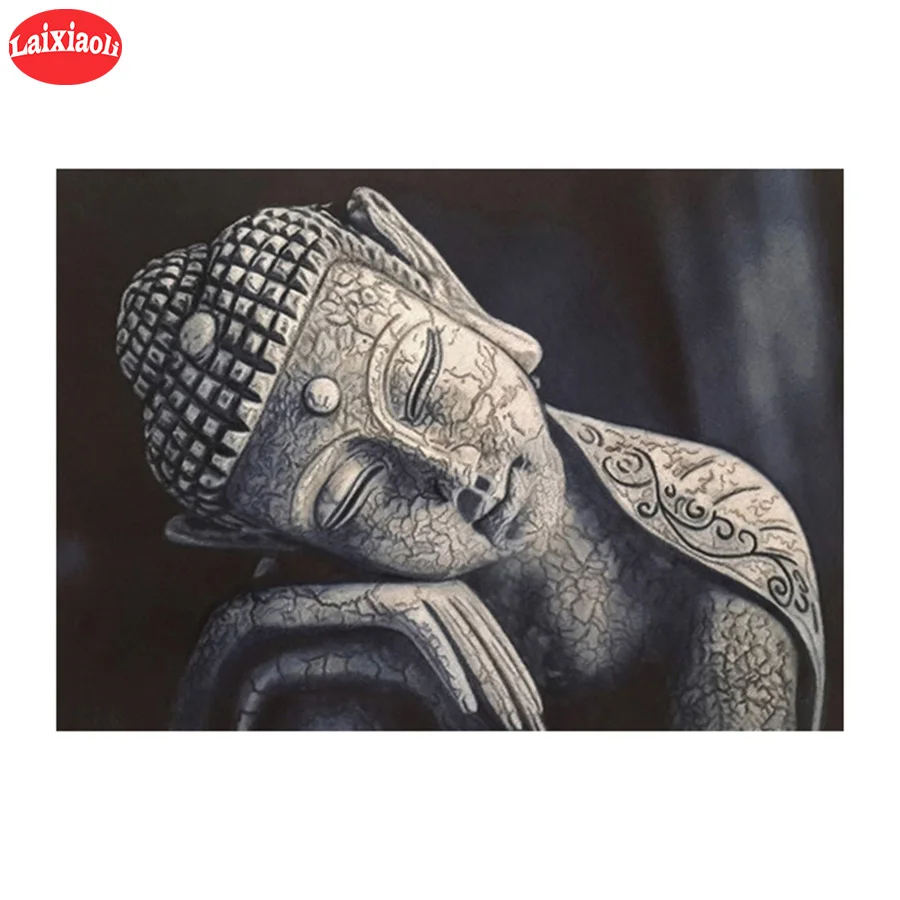 Фотография, статуя Будды, квадратная, круглая, искусство, живопись, вышивка крестиком, Настенный декор