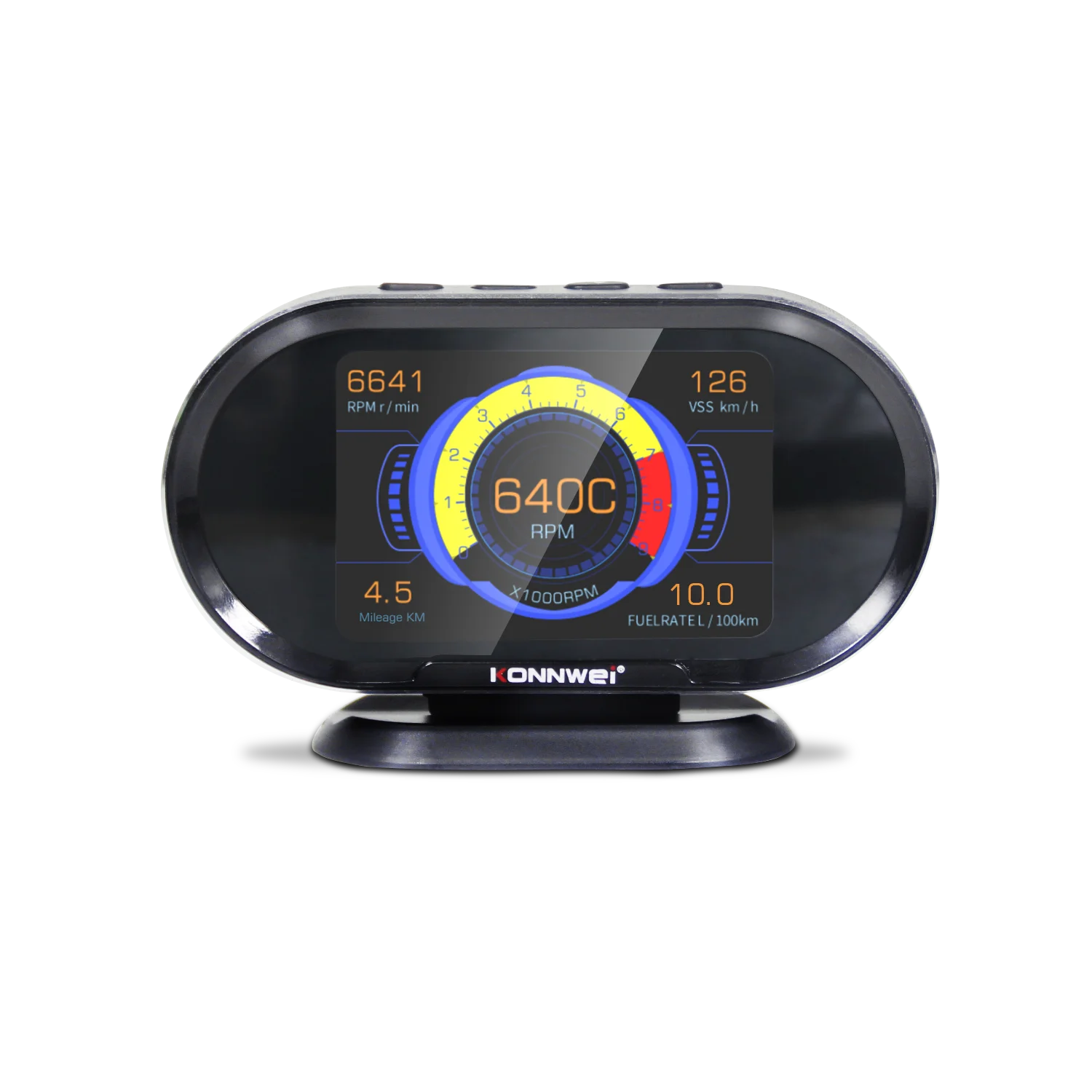 Компьютер KONNWEI KW206 OBD-это умный и мощный автоматический измеритель. Он специально разработан для транспортных средств, чтобы показать все данные в реальном времени на одном экране, это сочетание спидометра, датчика температуры двигателя, масляного термометра, манометра, счетчика расхода топлива и так далее.KW206 может также контролировать и отображать напряжение батареи, сигнал тревоги о превышении скорости, предупреждение о температуре двигателя, испытание на ускорение, а также считывать весь двигатель в режиме реального времени поток данных, считывание и стирание кода неисправности двигателя, это чрезвычайно полезный гаджет для каждого водителя в вашей повседневной жизни.