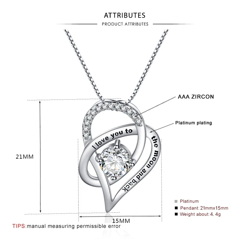 Дочке в женское ожерелье "Я люблю тебя To the moon and back" Сердце ожерелье с подвеской СемьЯ ювелирные изделия подарок на день рождения
