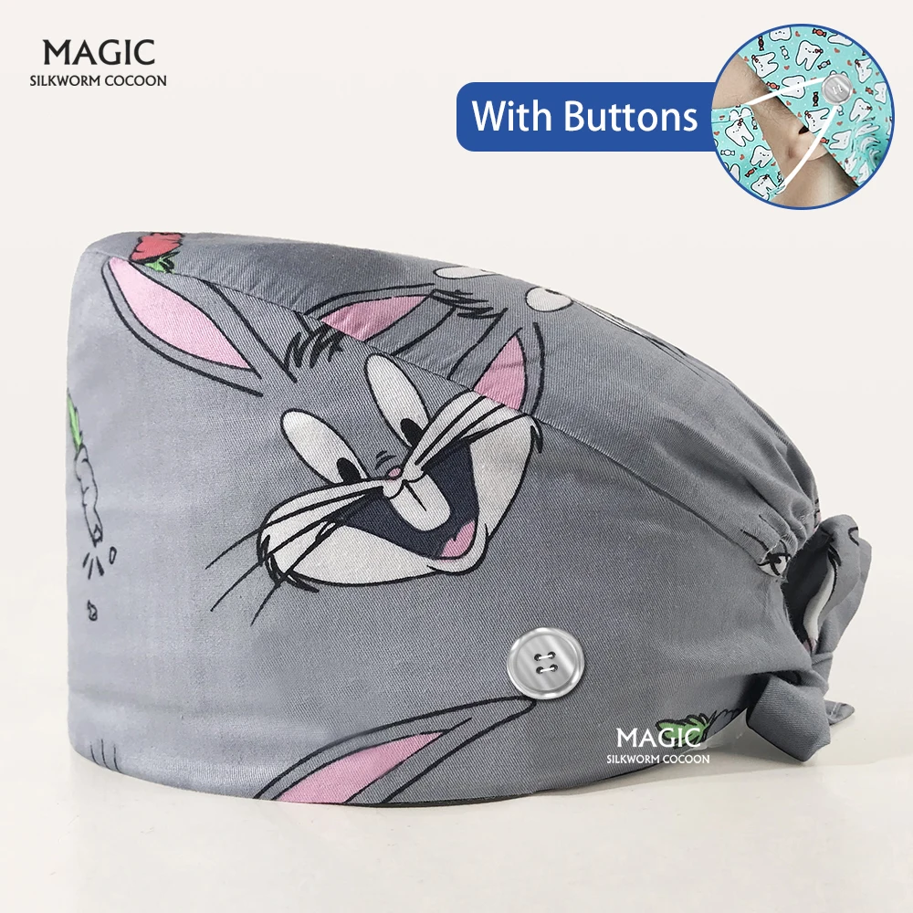 Шапка-медицинские шапочки для косметолога, мультяшный матовый принт...