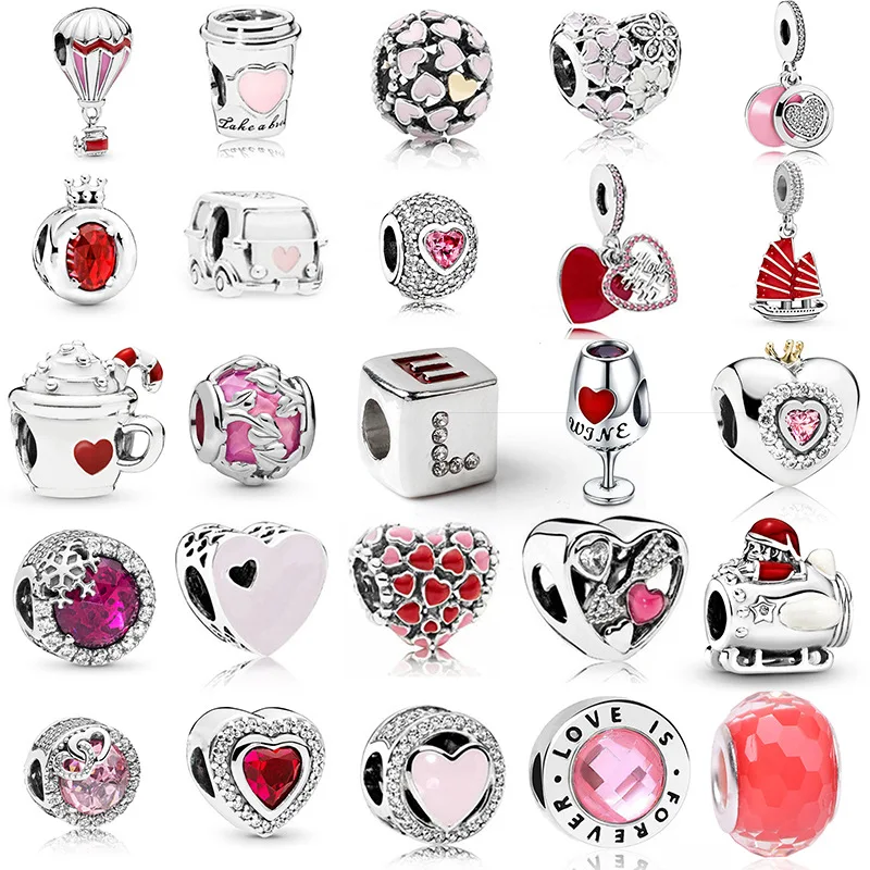 Браслет женский из серебра 925 пробы с бусинами в форме сердца и воздушных шаров