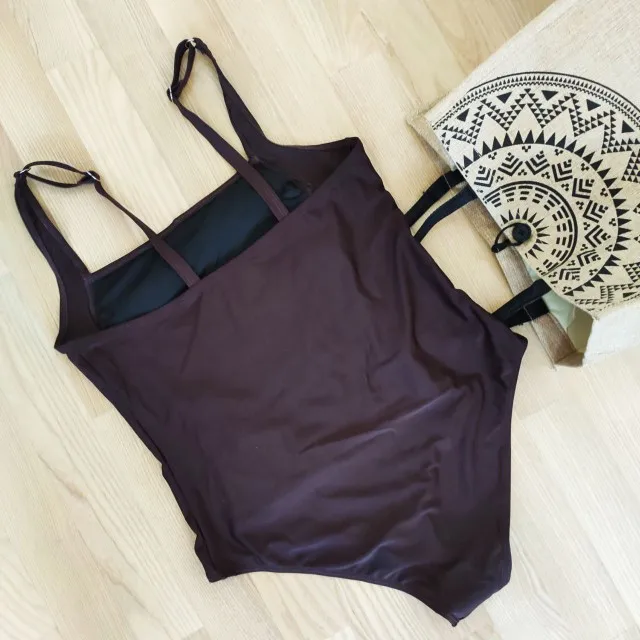 Найти размер плюс-https://s.click.aliexpress.com/e/_AlSoiU Модель слитного купальника для женщин изготовлена из материала с составом: Полиамид-82% и эластан-18%, благодаря чему он отлично сохраняет форму, не деформируется, быстро сохнет. Одноцветный купальник-Восхитительный шоколадный цвет. Черная подкладка. Благодаря драпировке спереди он хорошо скрывает живот, подходит для девочек с избыточным весом или беременных женщин. Можно регулировать длину лямок. Размерная сетка правильная. Размер XL для обхвата груди до 100 см. Также есть большие размеры. Модель купальника подходит для вечеринок в бассейне или в аквапарке. Доставка компанией Meest Express.
