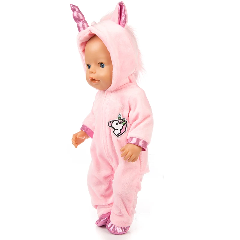 2021 Новинка для новорожденных 18 дюймов кукольная одежда аксессуары розовый голубой Единорог цельнокроеное платье для ребенка подарок на день рождения