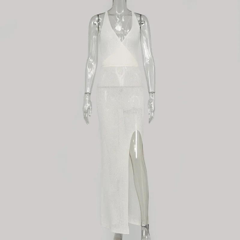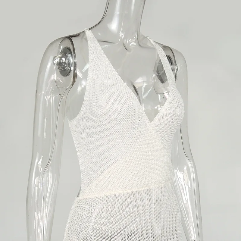 Летнее женское летнее платье, сексуальное пляжное платье с открытой спиной и V-образным вырезом, летнее пляжное платье без рукавов