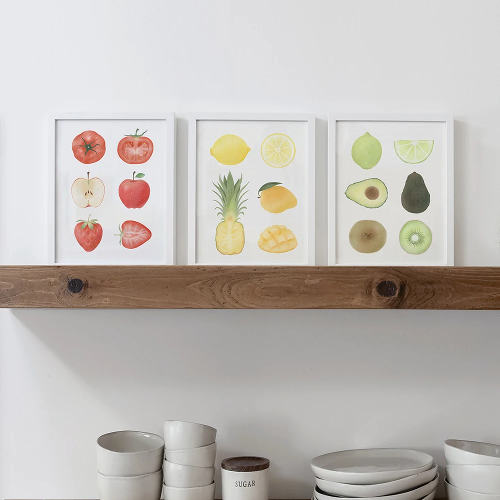 Фрукты кухонный плакат, винтажный постер, античный холст, принт, яблоко, ананас, авокадо, настенное искусство, декоративная картина, Картина на холсте