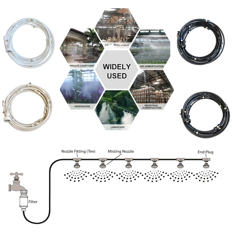 【Высокое качество продукта: Твердый латунный шланг/Соединительный адаптер для смесителя, гибкий и устойчивый к ультрафиолетовому излучению черный PE трубопровод, эксклюзивные латунные запотевающие насадки, хороший уплотнительный соединитель трубки, все эти аксессуары премиум-класса используются для создания системы охлаждения от запотевания, без протекания, без блокировки, без ржавчины и длительного использования 【Охлаждение тепла: система запотевания производит водяной туман, который поглощает тепло от окружающего воздуха в жаркое лето и обеспечивает охлаждение наружных зон, охлаждает окружающую температуру воздуха до 20 ℃ или 68 ℃ 【Запотевание и водонепроницаемость 】: полив путем запотевания может быть более большой областью, чем традиционный полив, эффективное повышение влажности и уменьшение частиц пыли, что обеспечивает равномерный объем воды для полива растений в саду, на овощах, ландшафтный дизайн, теплица, дает непрерывную запотевание воды для очистки в животноводстве 【Игра на открытом воздухе: Мягкий туман можно использовать в батуте аквапарке, зонтике, теневом парусе, бассейне/клетке для животных для игр на открытом воздухе, не только забавно, но и охлаждающе. Лучшие водные игры на открытом воздухе вечерние/толпы. 【Энергосбережение и защита окружающей среды 】: система охлаждения с запотеванием напрямую использует водопроводную воду для распыления и охлаждения, без потребления электроэнергии, без энергопотребления, экономит больше денег для вас и является экологичным.