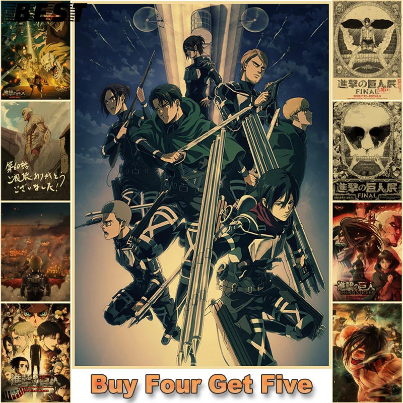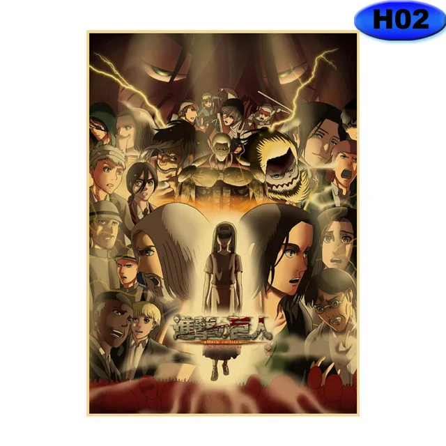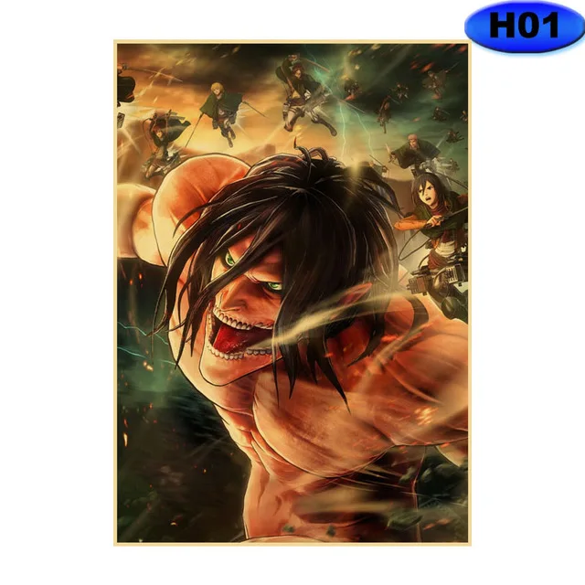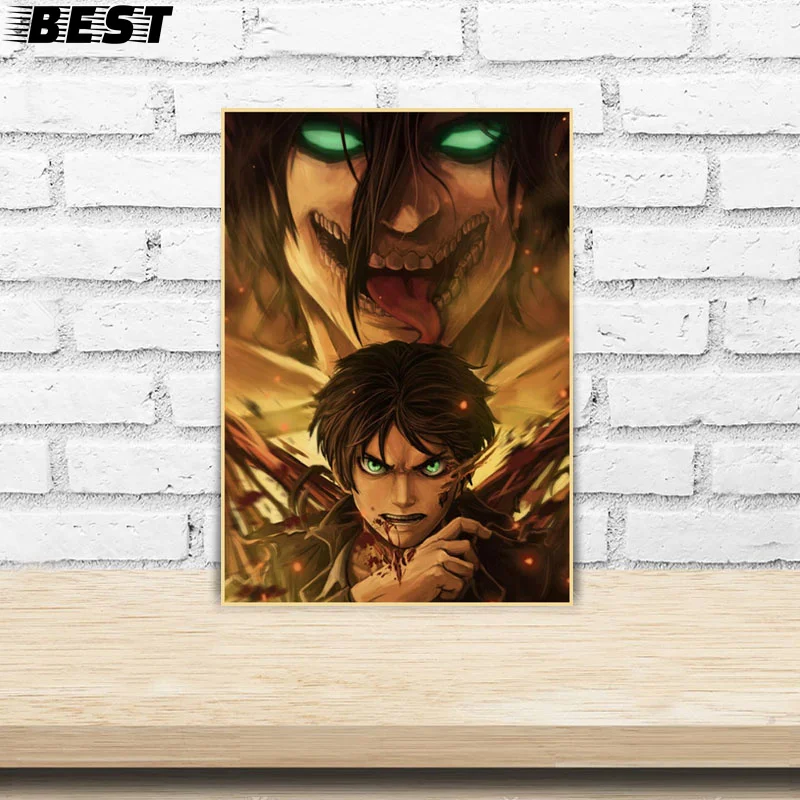 Плакаты из крафт-бумаги атака на Титанов, японское аниме, четкое изображение, украшение для гостиной, спальни, бара, кафе, украшение для дома