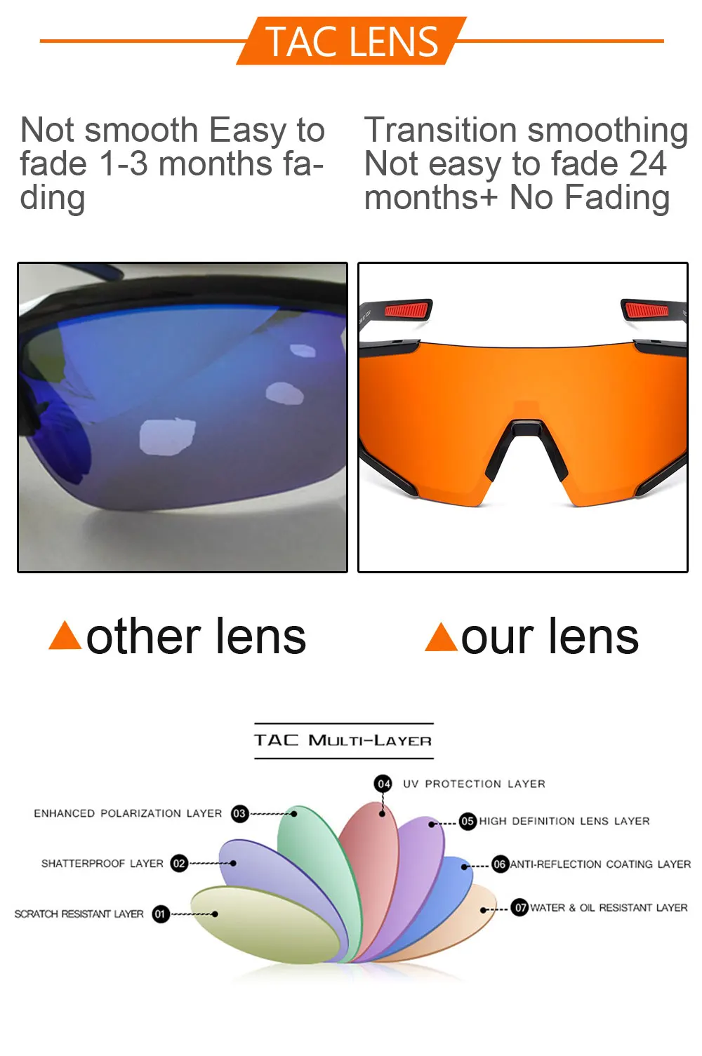 Поляризованные линзы-это материал TAC, другие линзы-поликарбонат, линзы и оправы-ударопрочные, устойчивые к царапинам, прочные и небьющиеся.