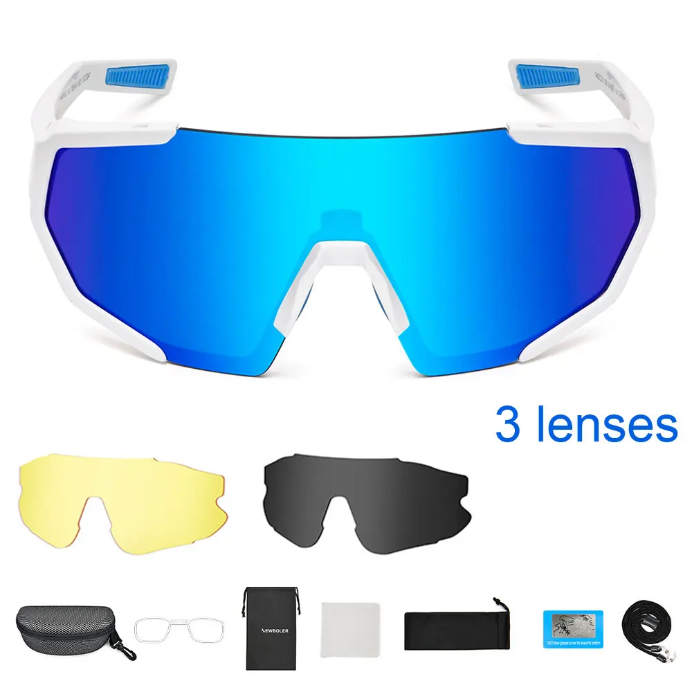 Название бренда: NEWBOLER Вес: 35 г Ширина линз: 140 мм Для: мужчин и женщин Цвет оправы: черный/оранжевый/синий/зеленый/белый Цвет линз: черный/желтый/прозрачный/серебристый/синий/оранжевый/зеленый Материал линз: поликарбонат Линзы: 3 линзы. 5 линз. Опционально Тип: велосипедные очки, спортивные очки, очки для вождения Особенности: поляризация. Защита от ультрафиолета. Ветрозащитный. Пыленепроницаемый Подходит для: езды на велосипеде. Вождение. Бег. Пеший туризм. Вождение в гольф. Кемпинг. Рыбалка. Спорт на открытом воздухе
