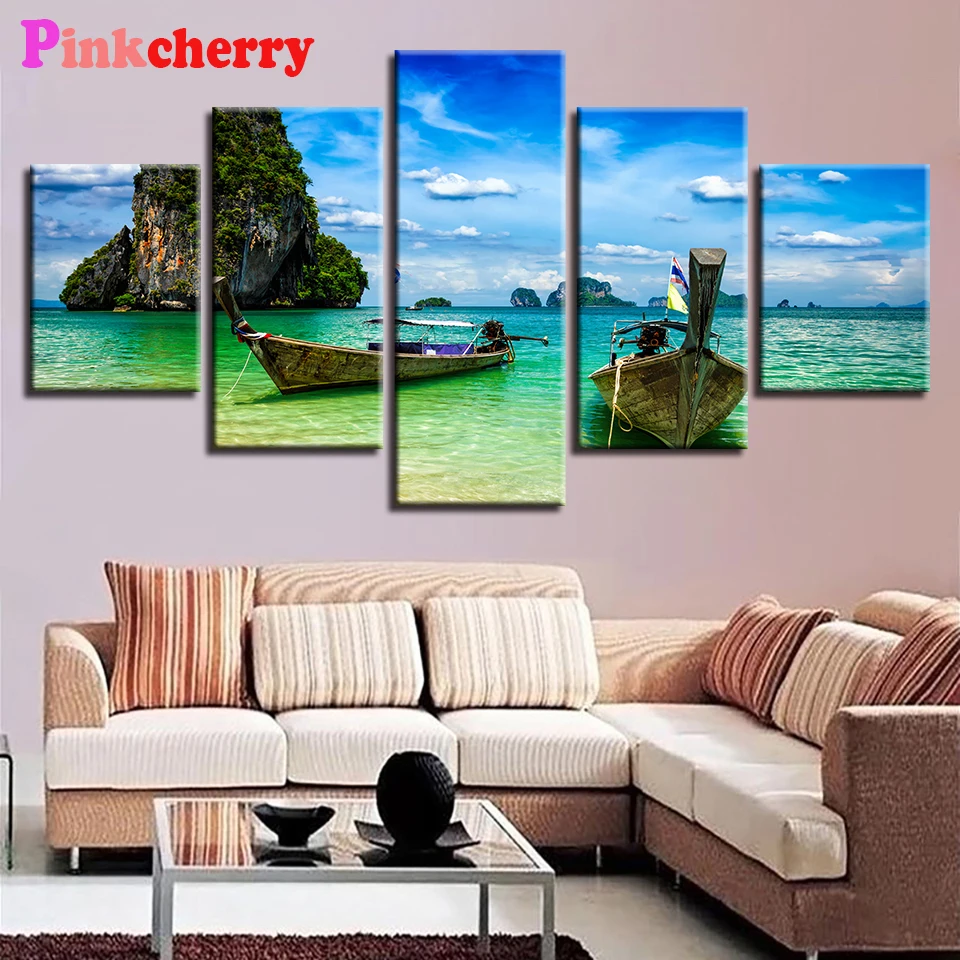 Набор для алмазной вышивки 5D островный корабль и голубое небо, белое облако, морской пейзаж, 5 шт.