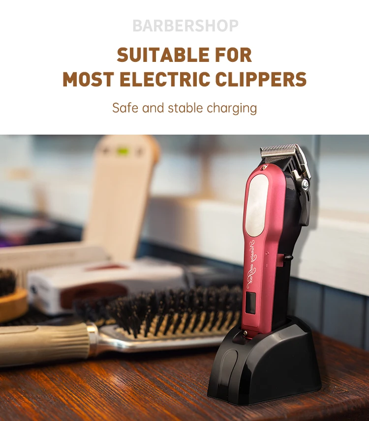 1. Эта электрическая подставка для стрижки подходит для большинства электрических машинок с двумя интерфейсами, особенно машинки для стрижки серии Wahl 8148/8164/8504/8509/8591/81919.2. Удобная Зарядная база, зарядка может быть сделана, пологая машинки для стрижки, что удобно и быстро. И зарядка безопасна и стабильна.3. Дно гнезда принимает нескользящий дизайн, который не будет перемещаться случайным образом на рабочем столе.4. Подходит для различных мест, зоотоваров, парикмахерских, домов и т. д.