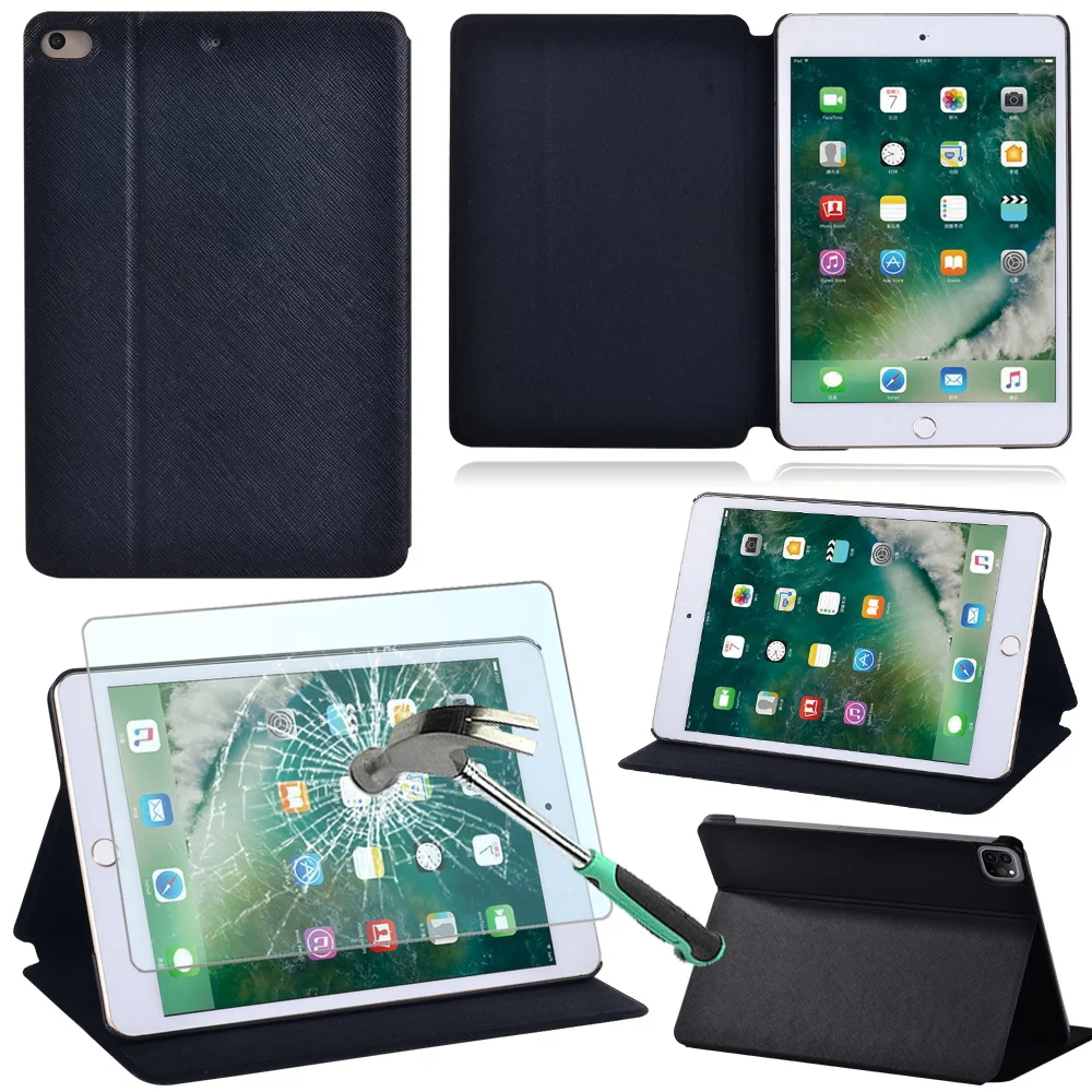 Чехол-книжка для Apple Ipad Mini 1 2 3ipad Mini 4 5, высококачественный кожаный чехол-подставка для планшета + закаленное стекло для планшета + ручка