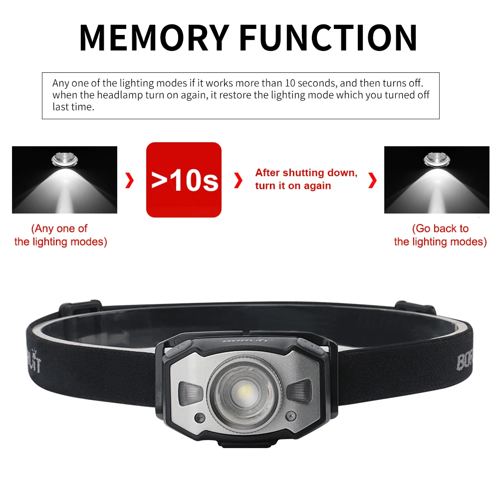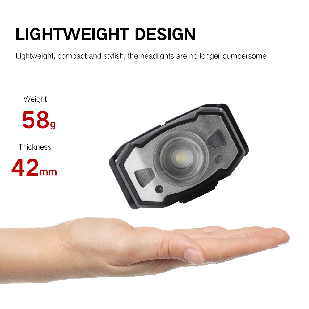 Налобный мини-фонарь BORUiT B33, светодиодный фонарь с ИК-датчиком движения, с 5-режимным зумом, перезаряжаемый, для охоты, рыбалки