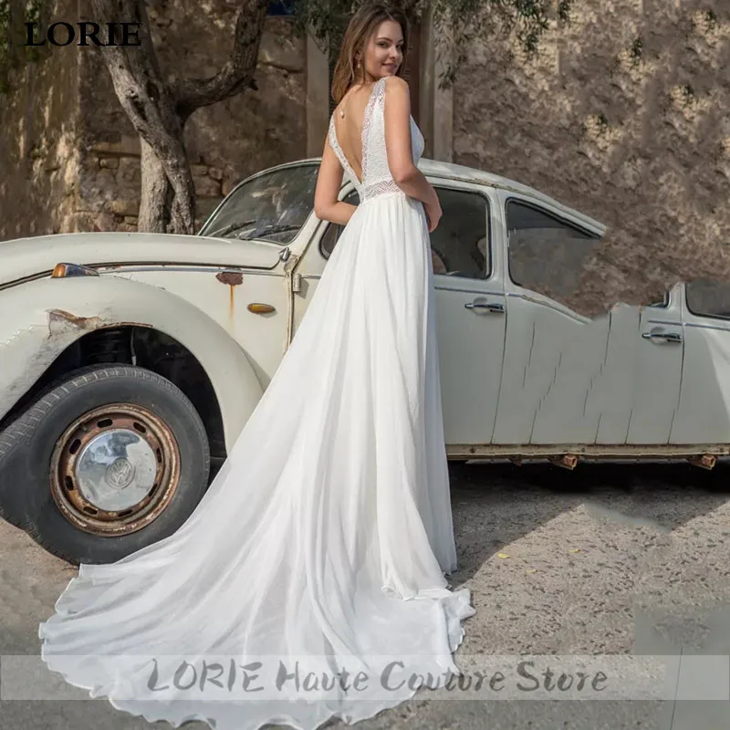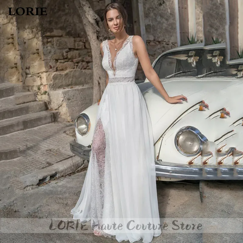 Шифоновое свадебное платье LORIE с V-образным вырезом, сексуальные платья невесты с разрезом, свадебное платье до пола, 2021