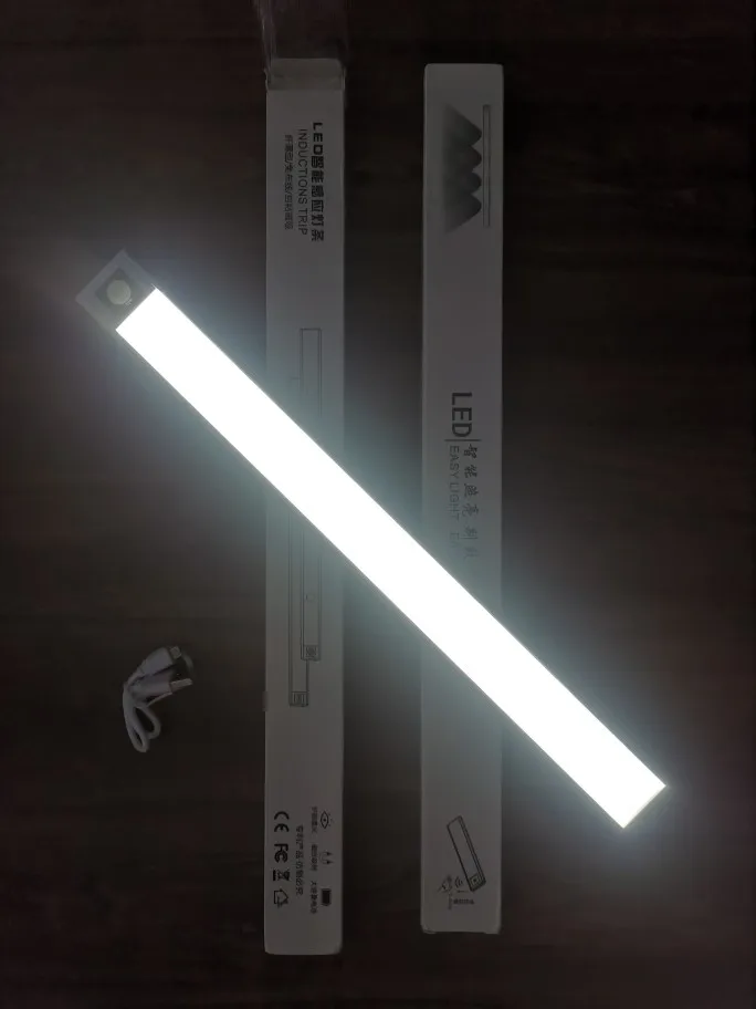 Отличные фонари за свои деньги. Брал в шкаф для освещения секций, по одному 40 см на потолок и по 20 см в выдвижной ящик. Зарядились быстро, индикатор при полной зарядке меняет цвет с красного на зеленый. Не очень предсказуемо работают датчики движения, не разобрался, в какой момент и на что они реагируют, поэтому фонари включаются при открытии шкафа по собственному желанию. Ну или я недостаточно убедительно размахиваю руками в шкафу? Вполне возможно, датчик настроен на жаркое латинское танго, поэтому советую в шкаф залетать резко, с розой в зубах и женщиной подмышкой. Товар соответствует описанию, продавца советую!