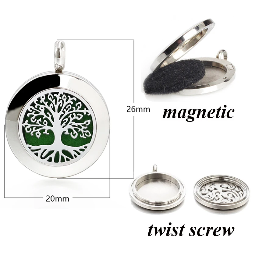 Подвеска-диффузор из нержавеющей стали для изготовления женских ювелирных изделий, подвеска в виде цветка, дерева, ароматического духов, медальон с цепочкой, 10 подушечек, 20 мм