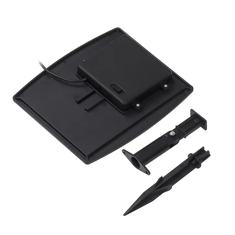 Посылка включает подставку и шип, солнечная панель может быть закреплена на земле или лужайке.